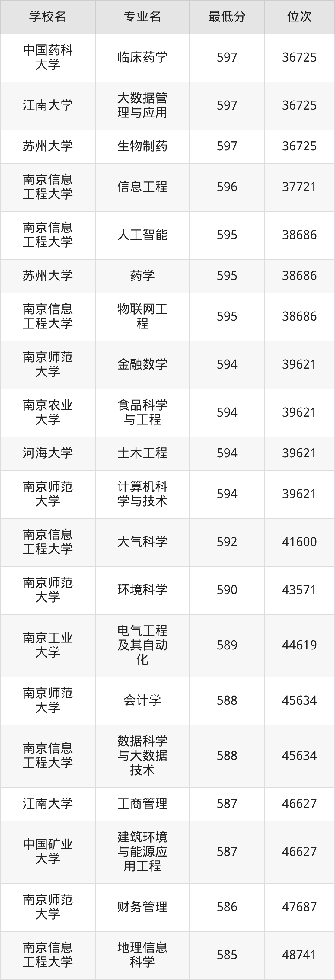 (3)江南大学:2025年中外合作办学分数线590分,位次是8107名,招生专业有1个,最低为工商管理。
