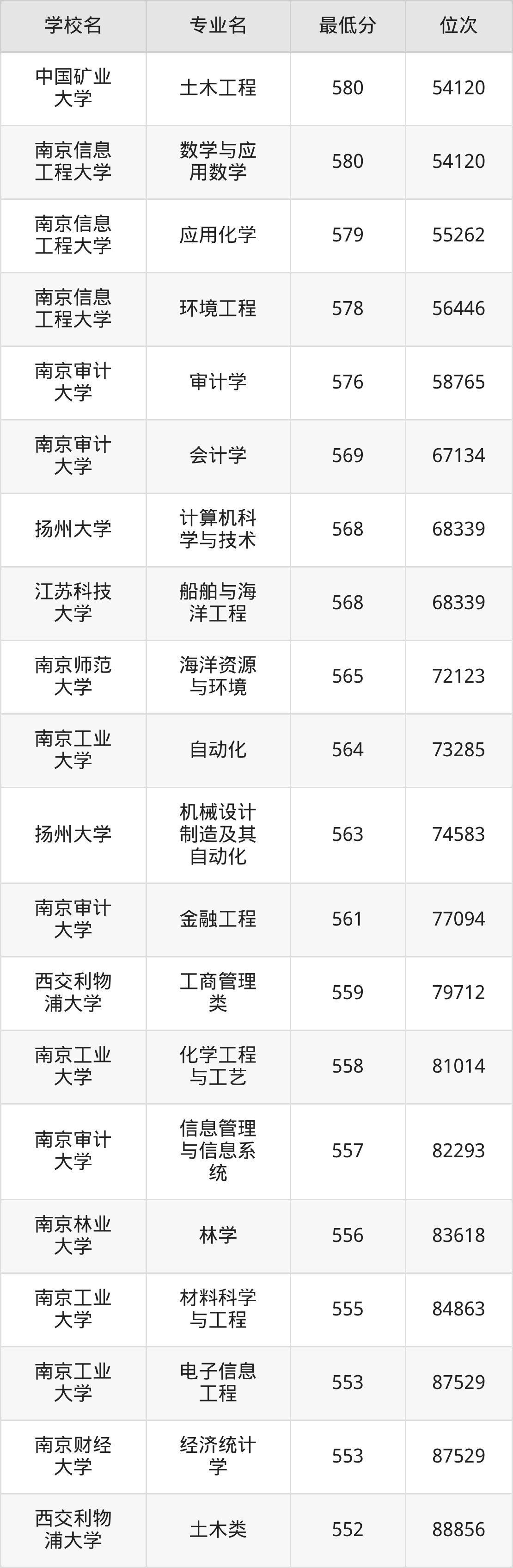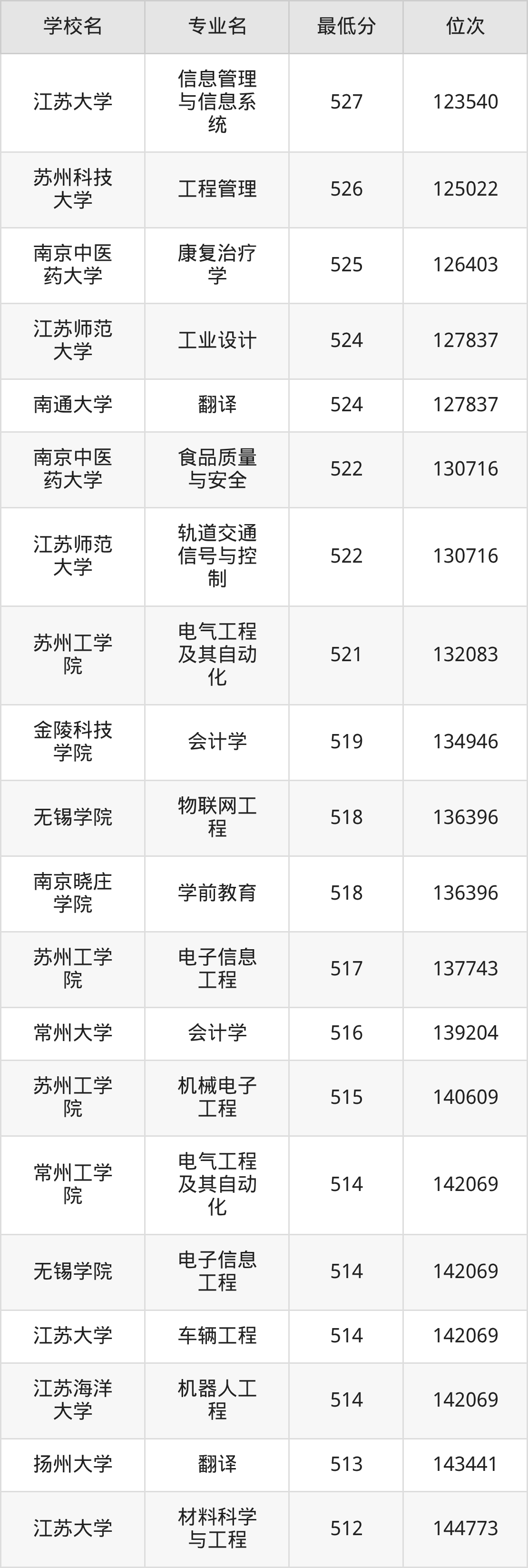 (4)扬州大学:2025年中外合作办学分数线529分到559分,位次区间是33084名到19225名,招生专业有3个,最低为翻译、最高为国际商务。