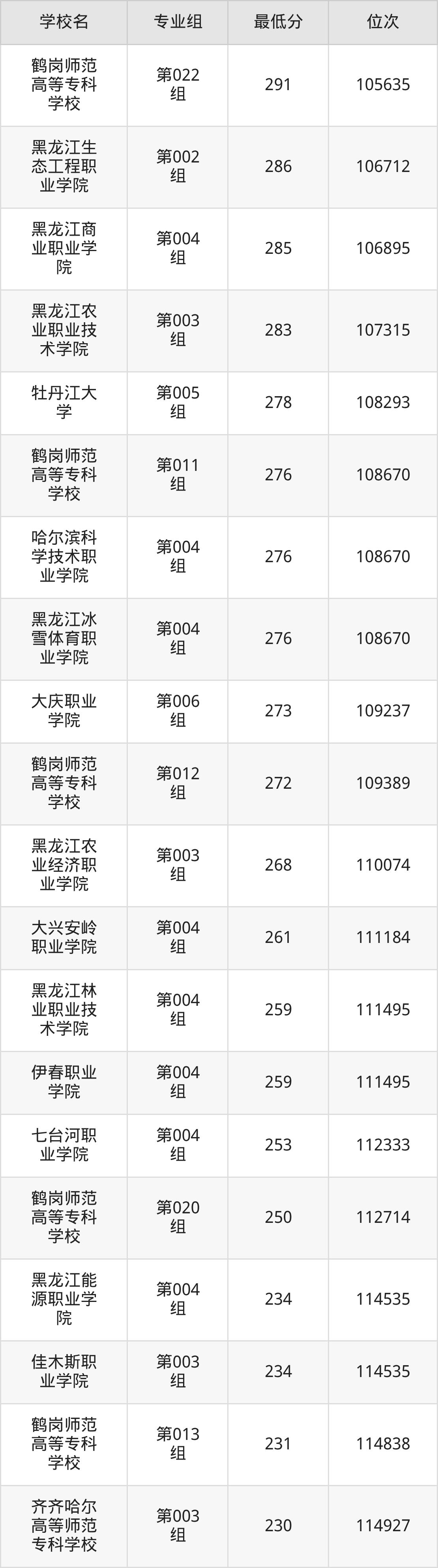 (3)黑龙江农业职业技术学院:2025年公办大专分数线283分,位次是107315名,招生专业组有1个,最低为第003组。