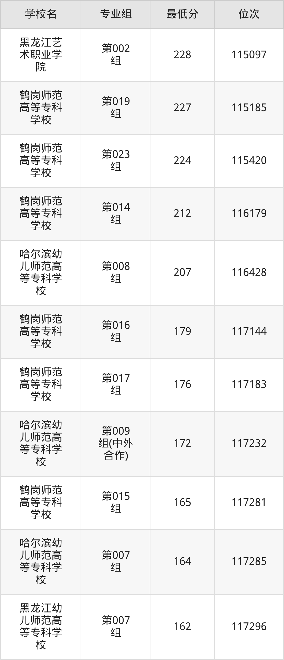 二、黑龙江公办大专录取分数线(历史类)