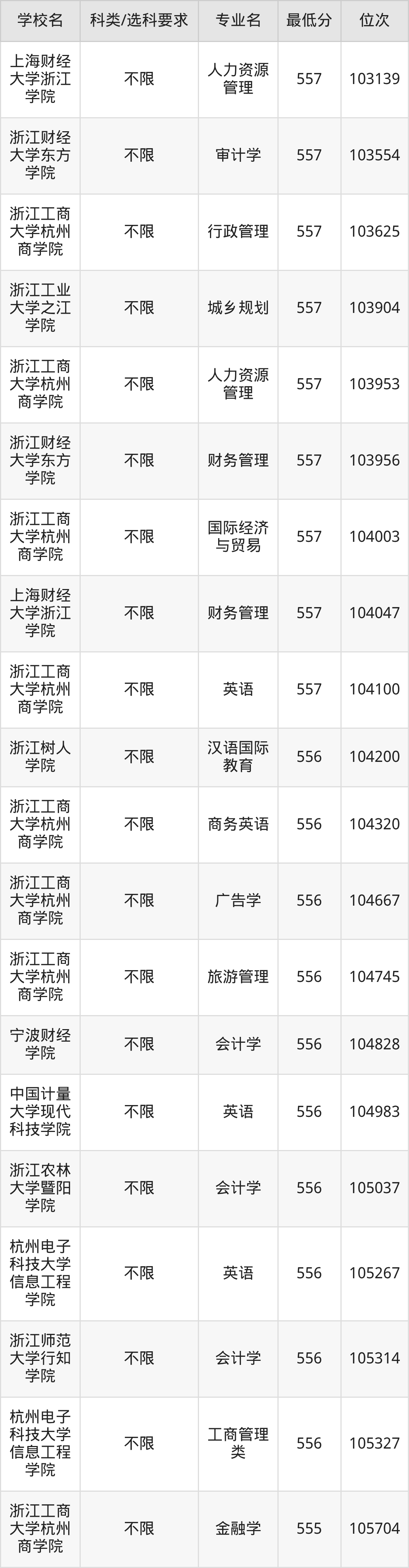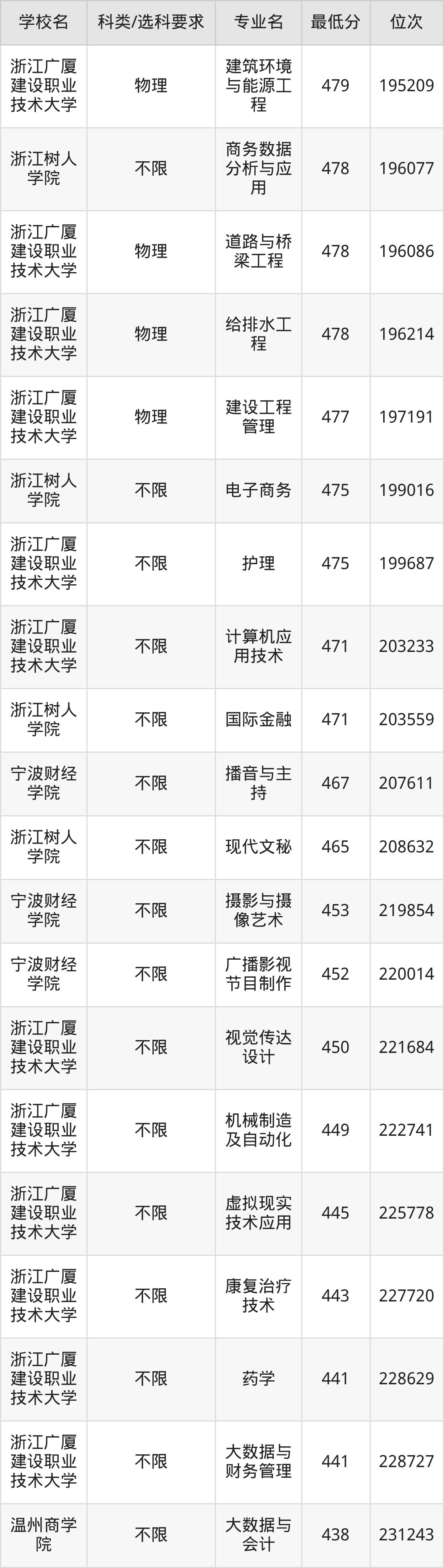 (3)浙江树人学院:2025年民办本科分数线465分到562分,位次区间是208632名到97989名,招生专业有43个,最低为现代文秘、最高为汉语言文学。