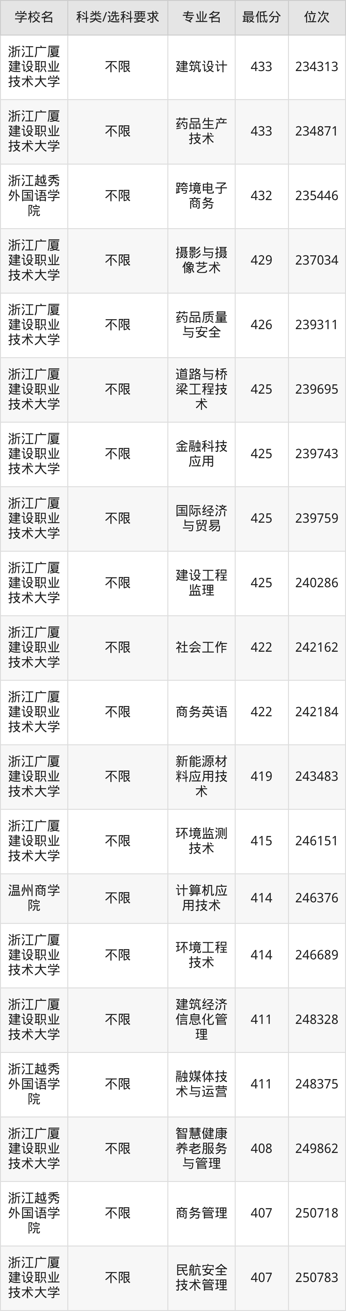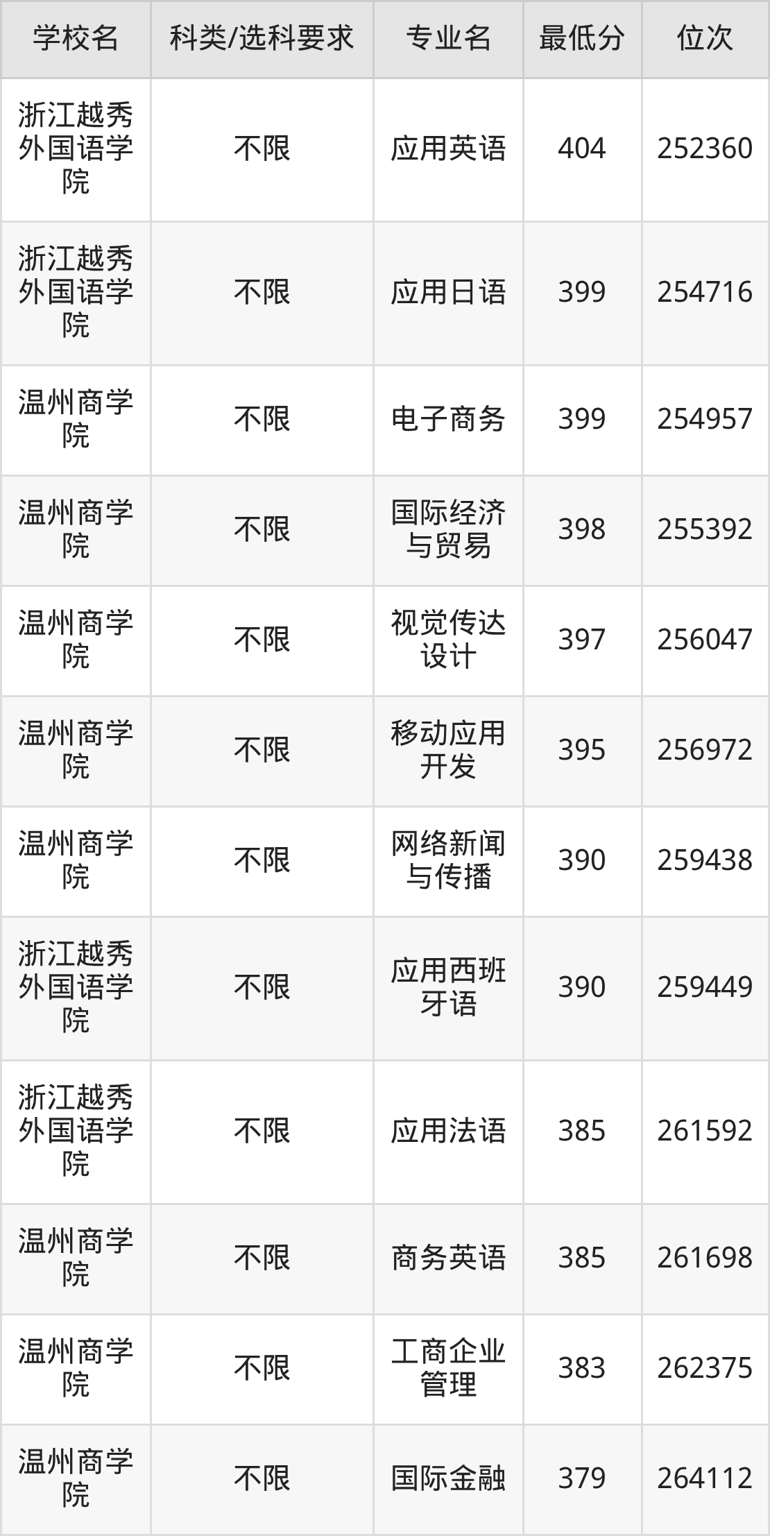 2025年浙江民办本科录取分数线:是379分到656分,其中温州商学院最低分:379分;浙江越秀外国语学院最低分:385分;浙江广厦建设职业技术大学最低分:407分等。