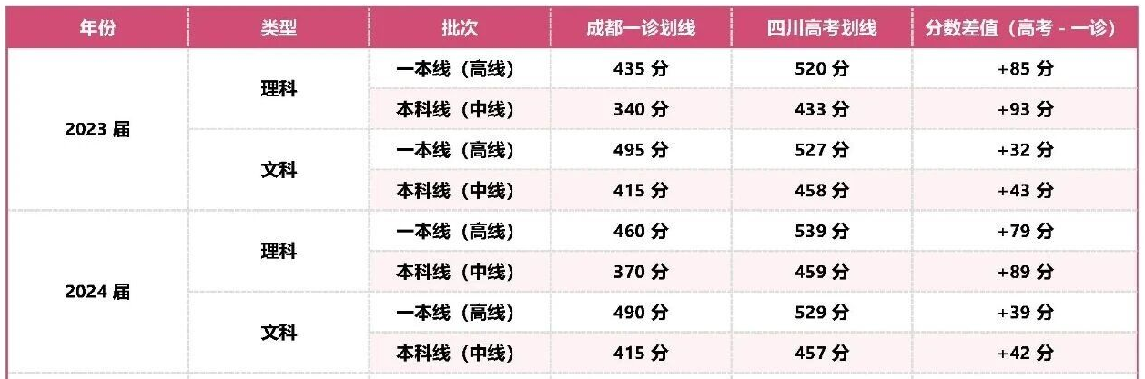 2025年成都参加的是八省联考,这里仅收集到2024年、2023年成都一诊分数线情况。详情如下: