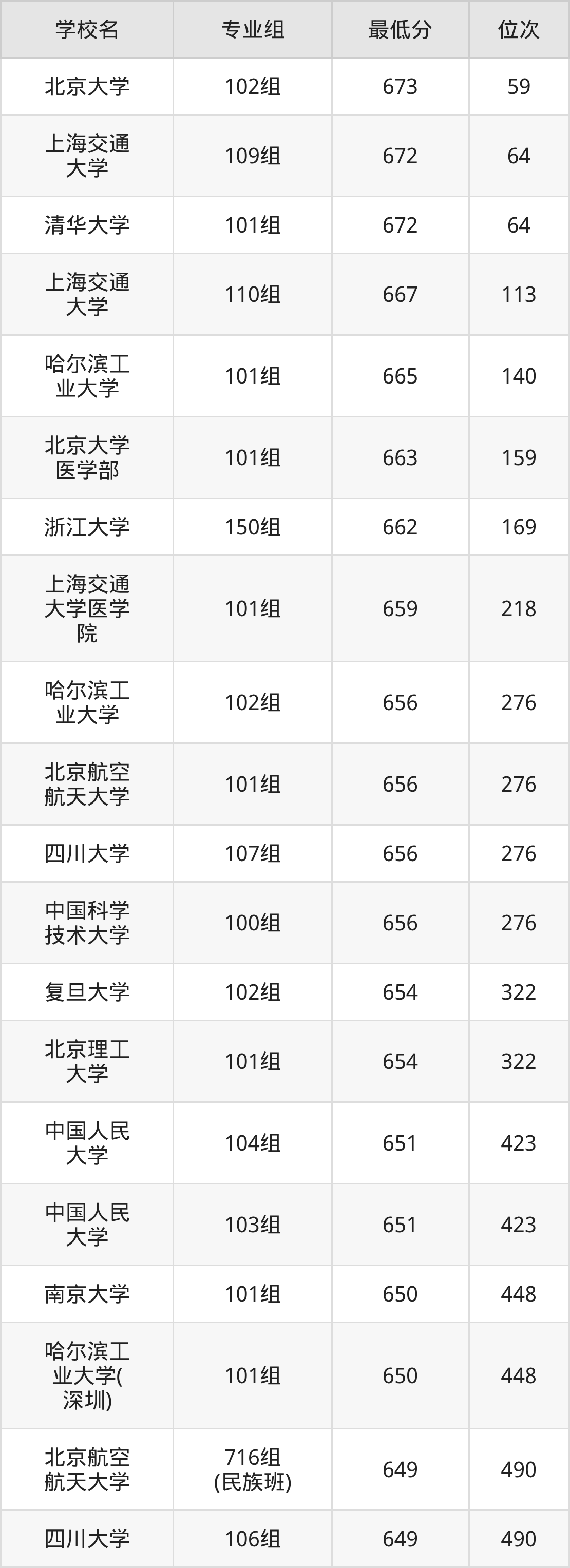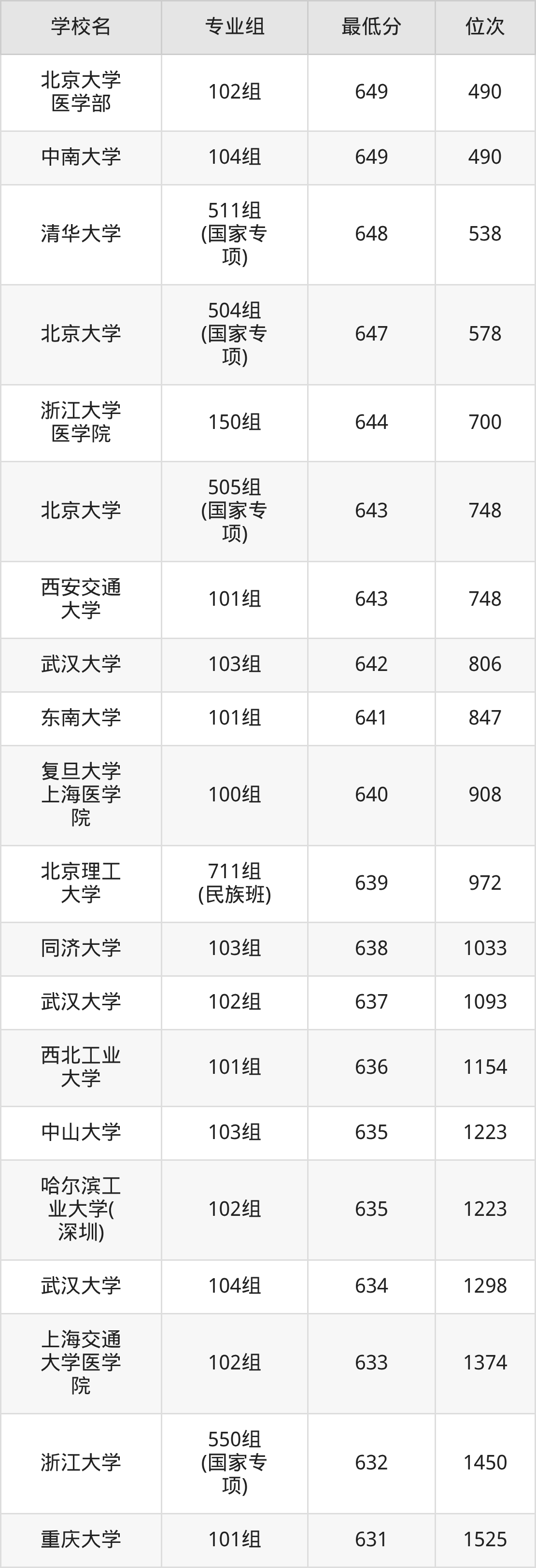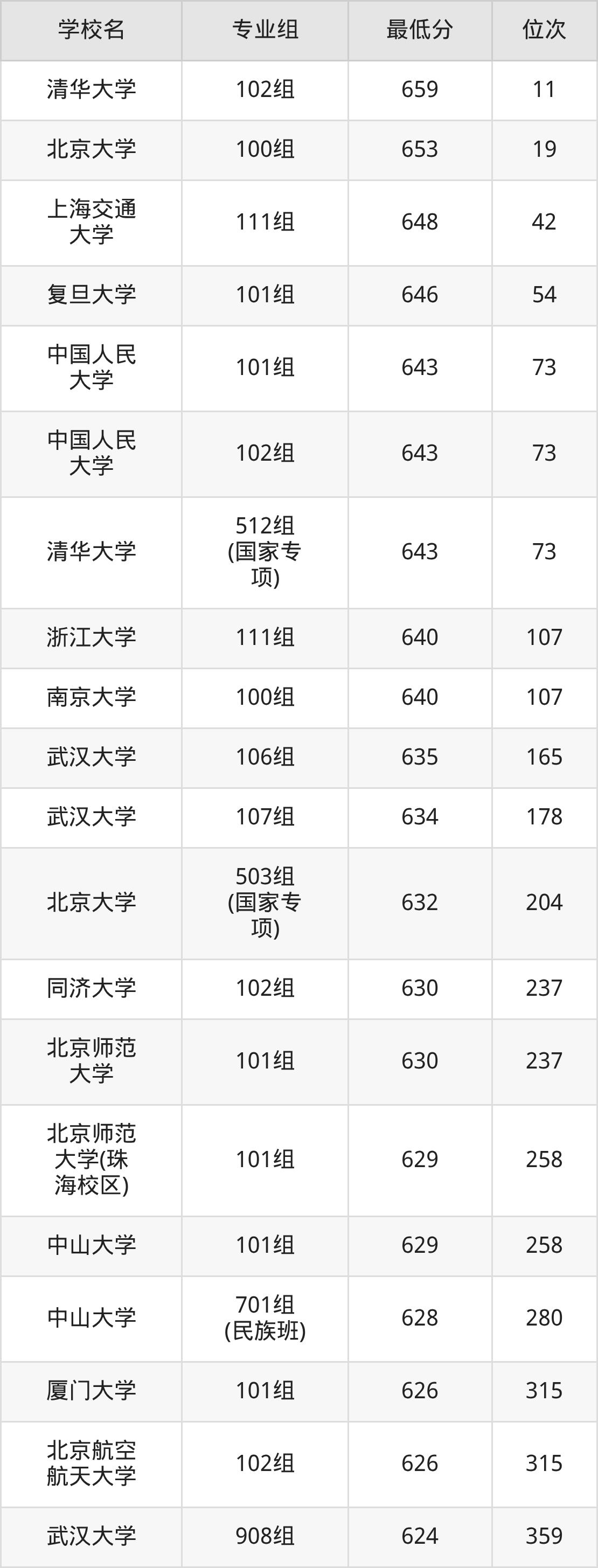 (4)上海交通大学:2025年985分数线648分,位次是42名,招生专业组有1个,最低为111组。