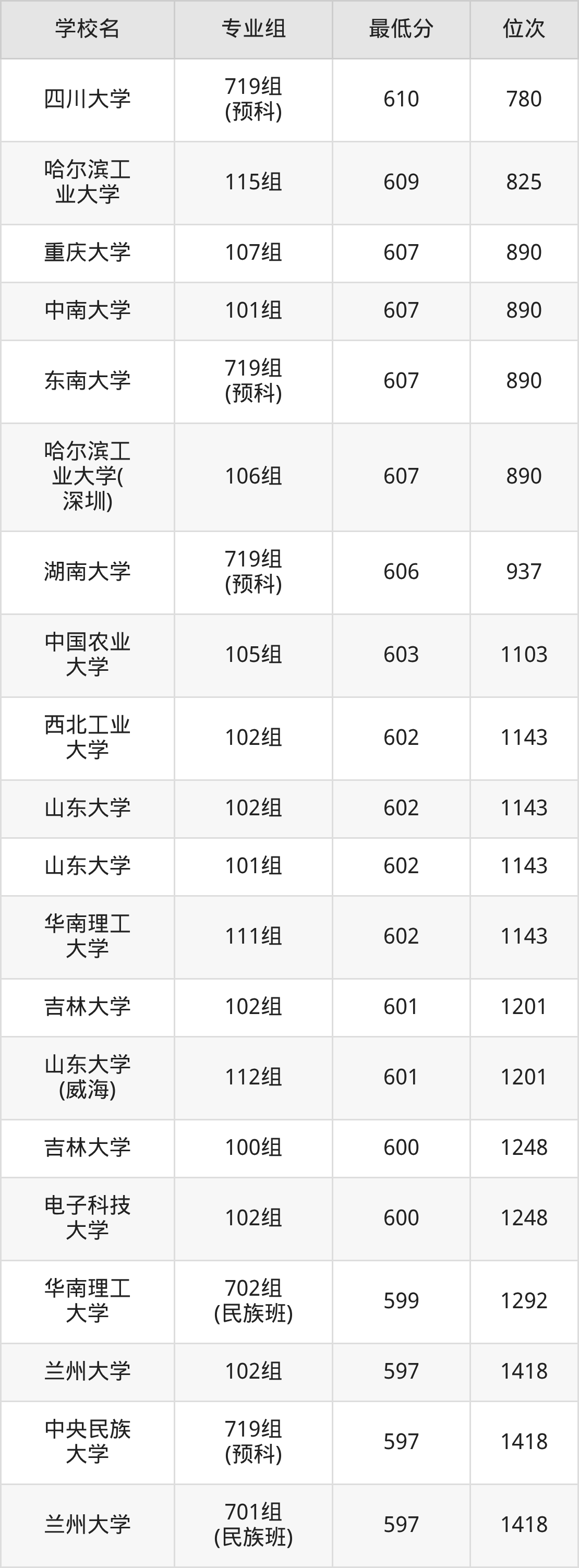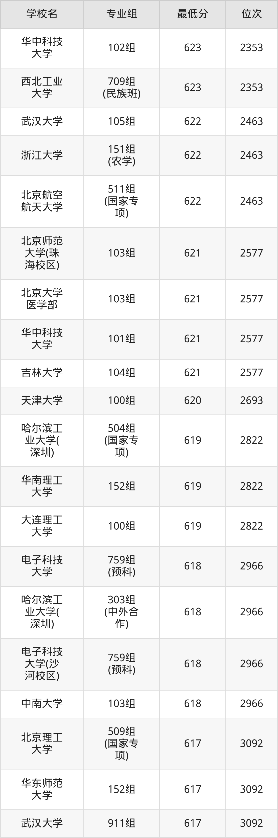 (3)西北工业大学:2025年985分数线602分,位次是1143名,招生专业组有1个,最低为102组。