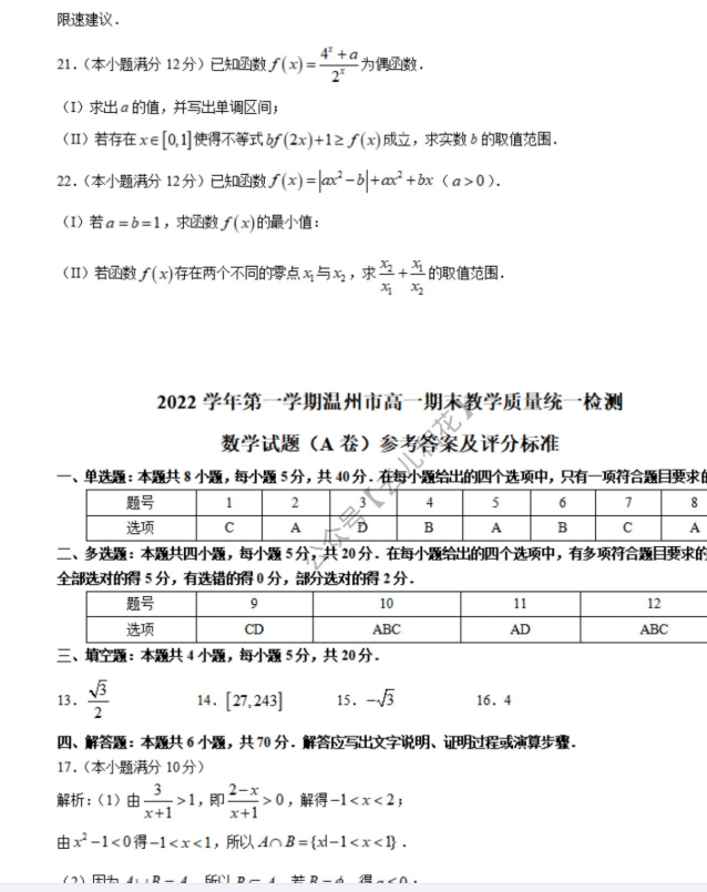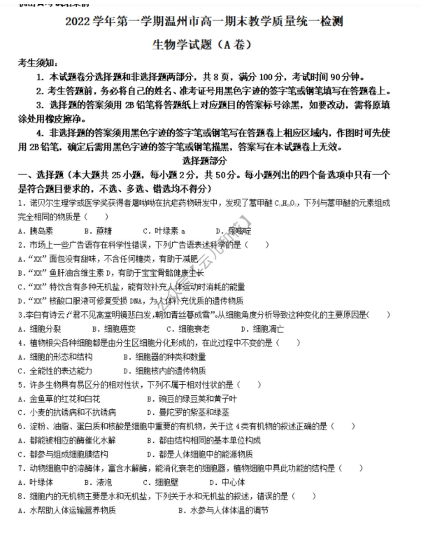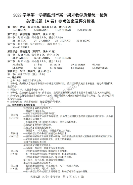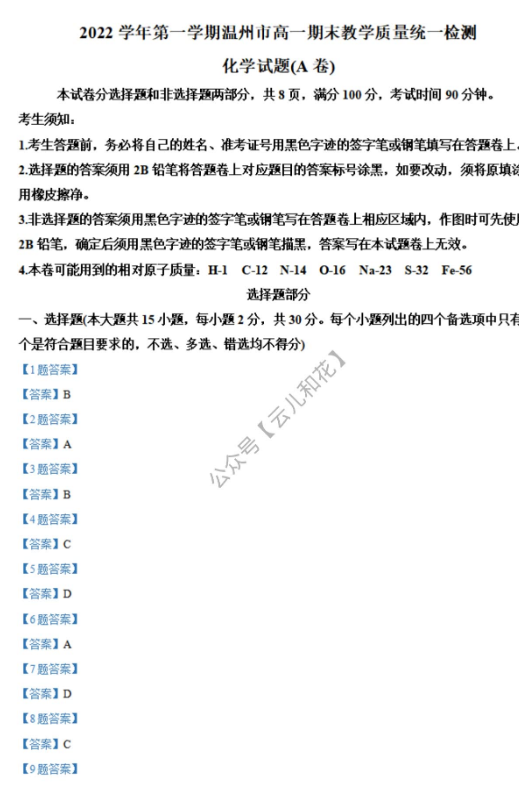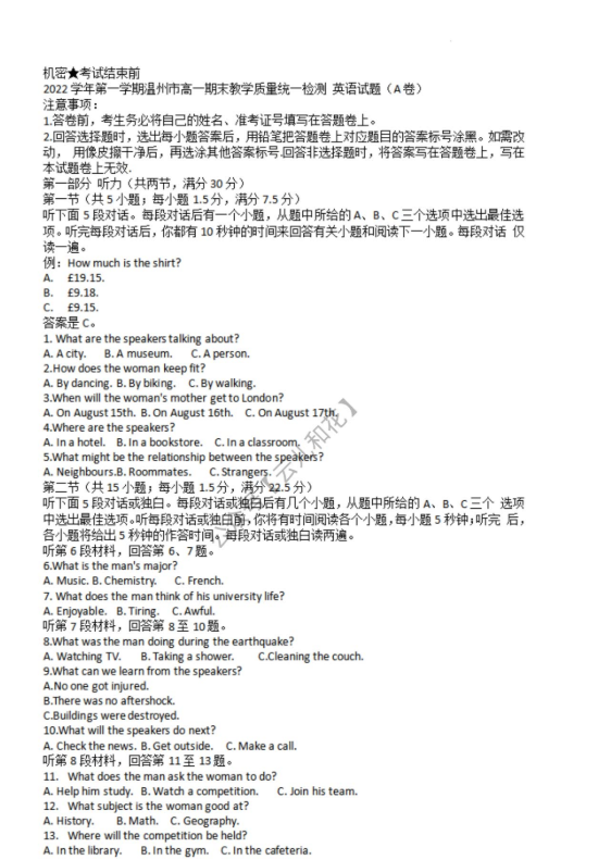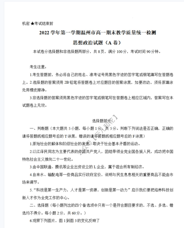 2023年浙江温州高一期末统测将于2月1日开考,各科试卷及答案将在考后更新,在本文圆梦志愿小编整理了2023温州高一期末统测语文、数学、英语、物理、化学、生物、政治、历史、地理等九门学科试卷及答案汇总,供大家参考,请大家持续关注本文或高考100网站。