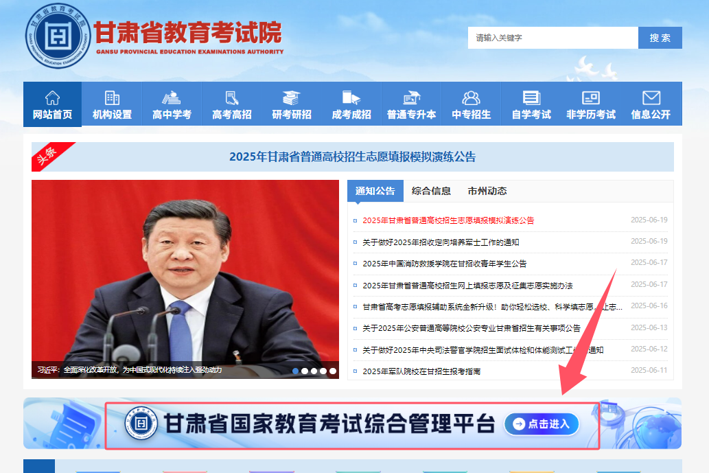 甘肃是2025年进行新高考的地区之一,并于6月10日结束了本年度高考。为帮助考生能在正式填报志愿之前熟悉、掌握志愿填报系统的操作流程,甘肃教育考试院安排了一场新高考志愿填报模拟演练,具体信息如下: