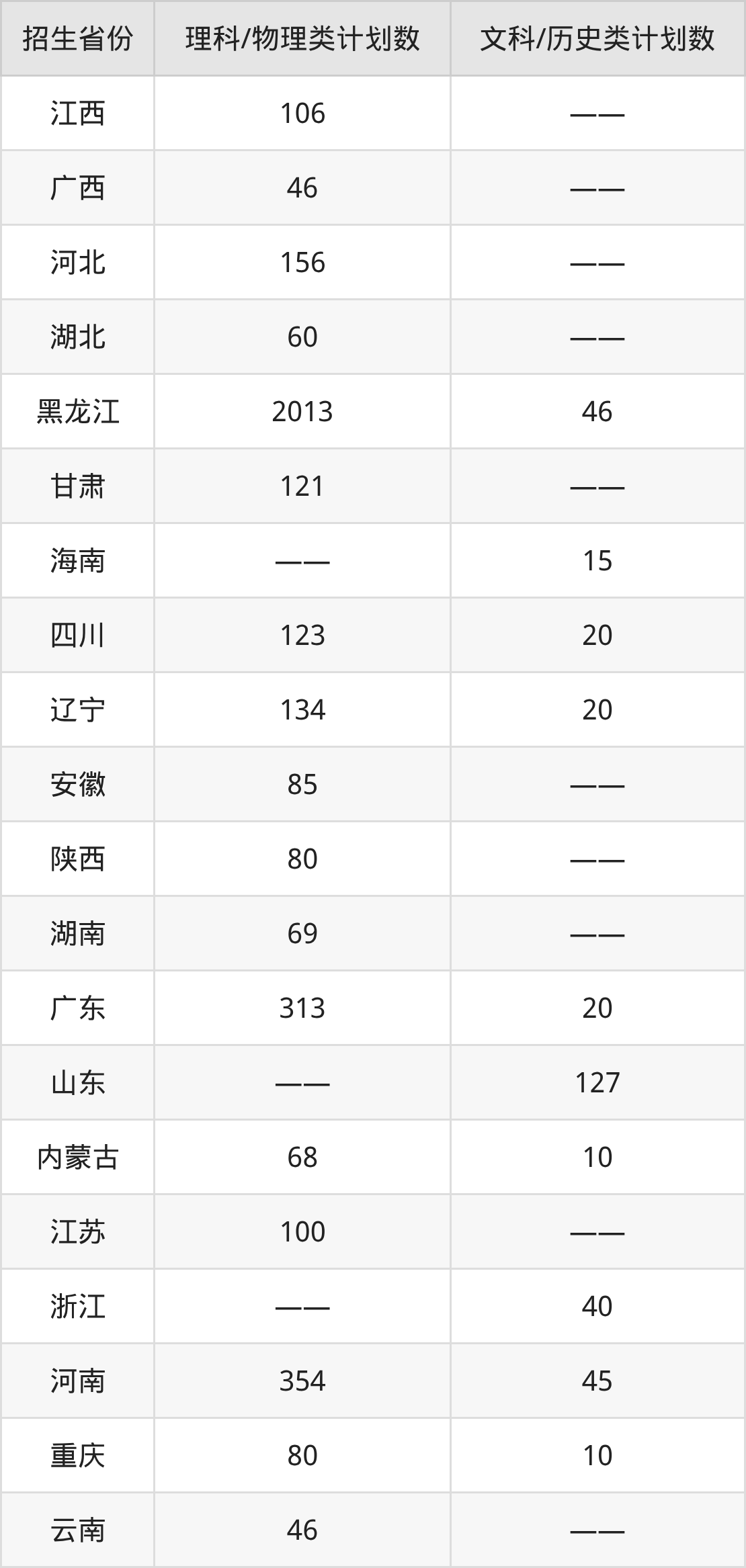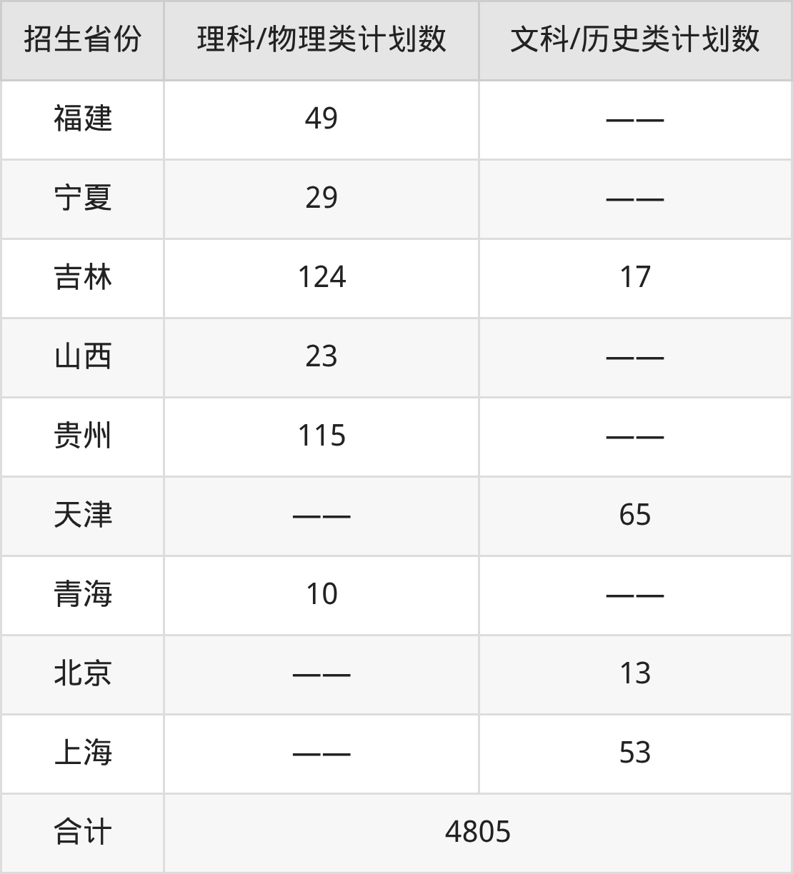 分省招生计划: