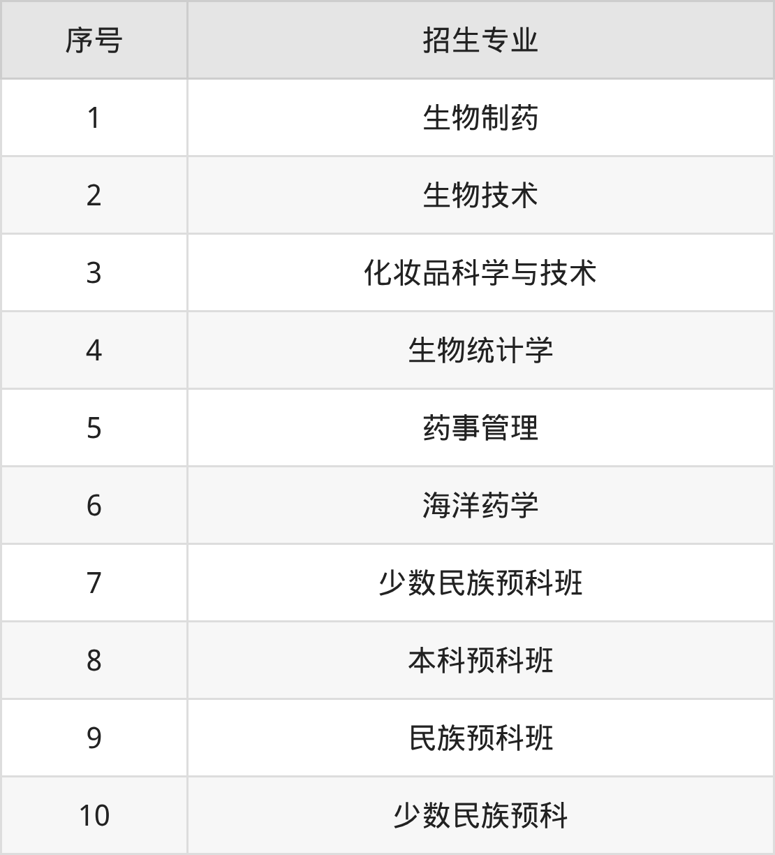 (2)根据《普通高等学校招生体检工作指导意见》,色盲色弱的考生不能录取到学校药学相关专业,包括:药学(杰出药学家实验班)、药学(拔尖创新班)、药学类、中药学(拔尖创新班)、中药学类、化妆品科学与技术、生物制药(拔尖创新班)、生物制药、生物技术、海洋药学、化工与制药类、临床药学(卓越药师实验班)、临床药学、药学(中外合作办学)、临床药学(中外合作办学),请考生谨慎填报。