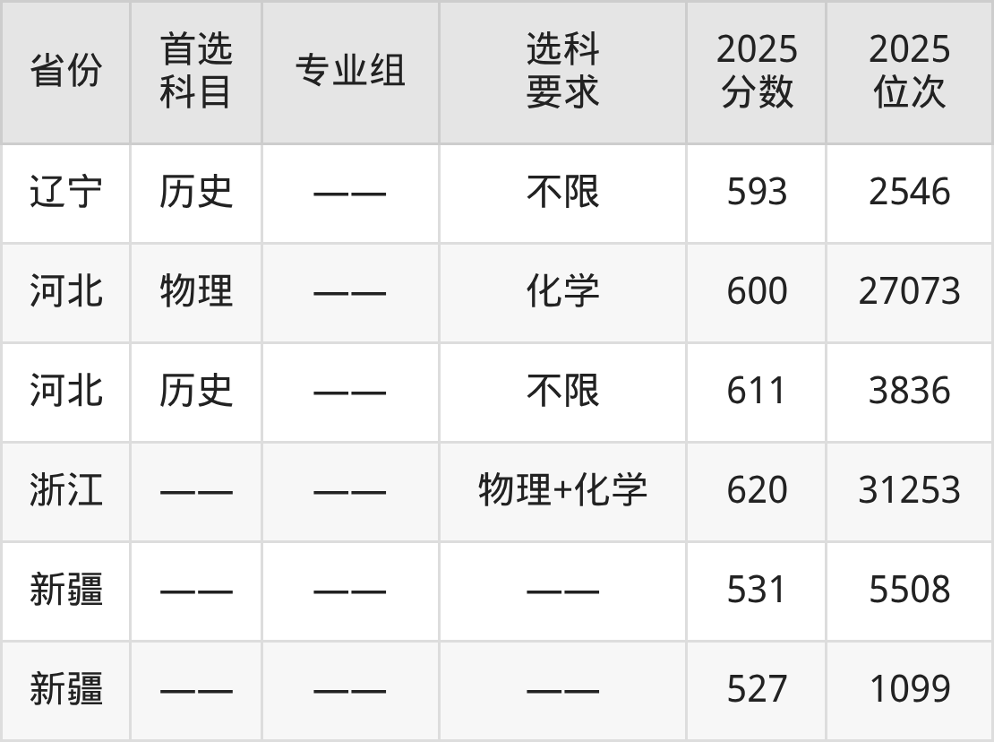 7、辽宁2025年中国药科大学在辽宁最低录取分数线:物理类590分、历史类593分。