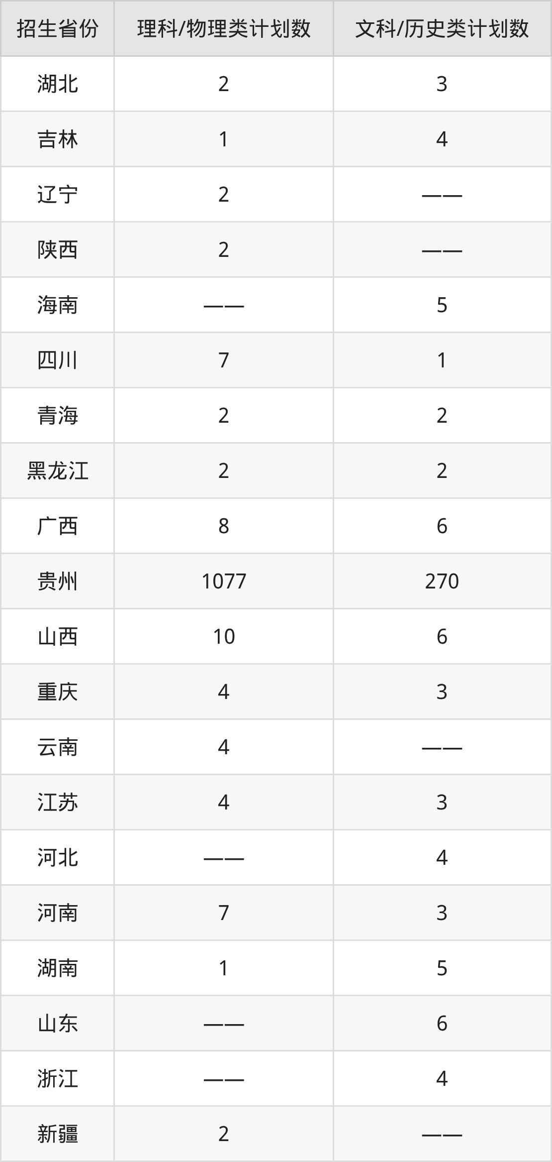 分省招生计划: