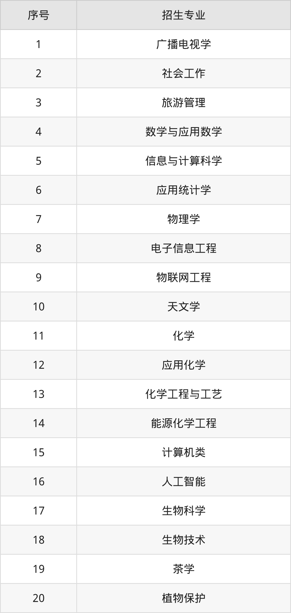 文化产业管理、经济学、农林经济管理、物流管理、外国语言文学类、日语、学前教育、小学教育、应用心理学、汉语言文学