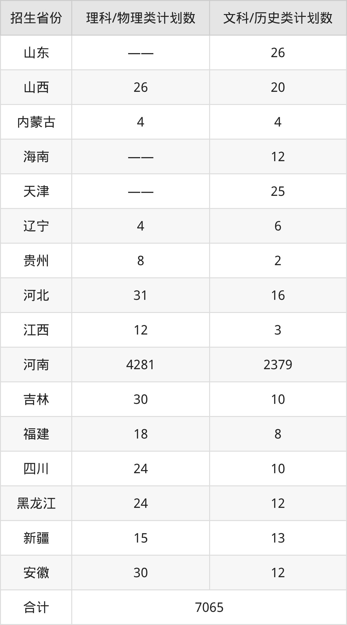 郑州升达经贸管理学院招生简章显示:学校在全国16个省(市、自治区)招收7065人,包括历史类2482人、物理类4492人、文科13人、理科15人、3+3省份63人,招生专业有经济学、税收学、金融学等。