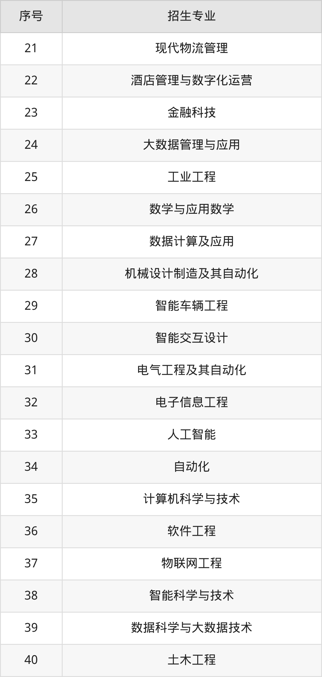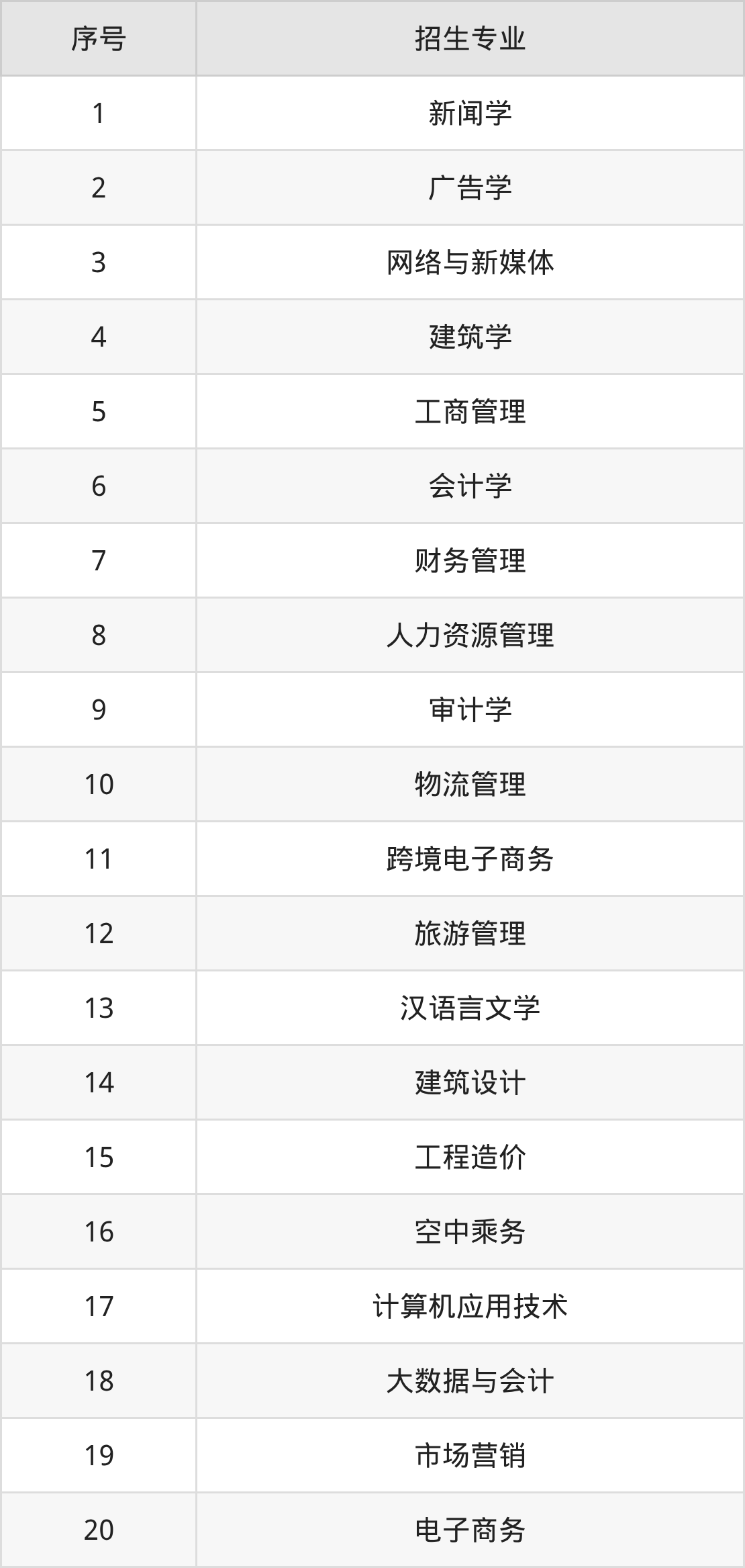 经济学、税收学、金融学、国际经济与贸易、法学、学前教育、英语、日语、翻译、商务英语