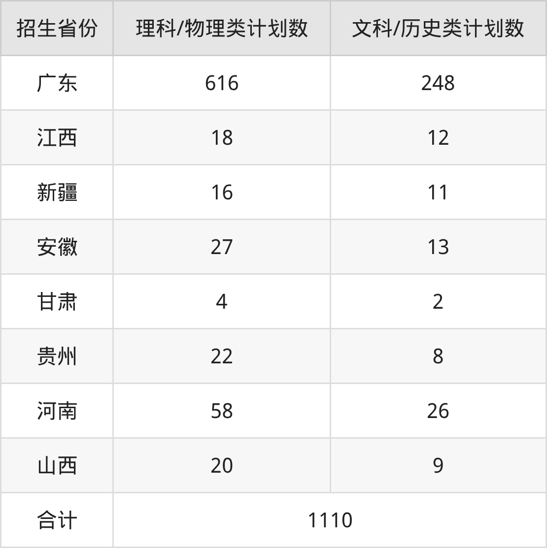 分省招生计划: