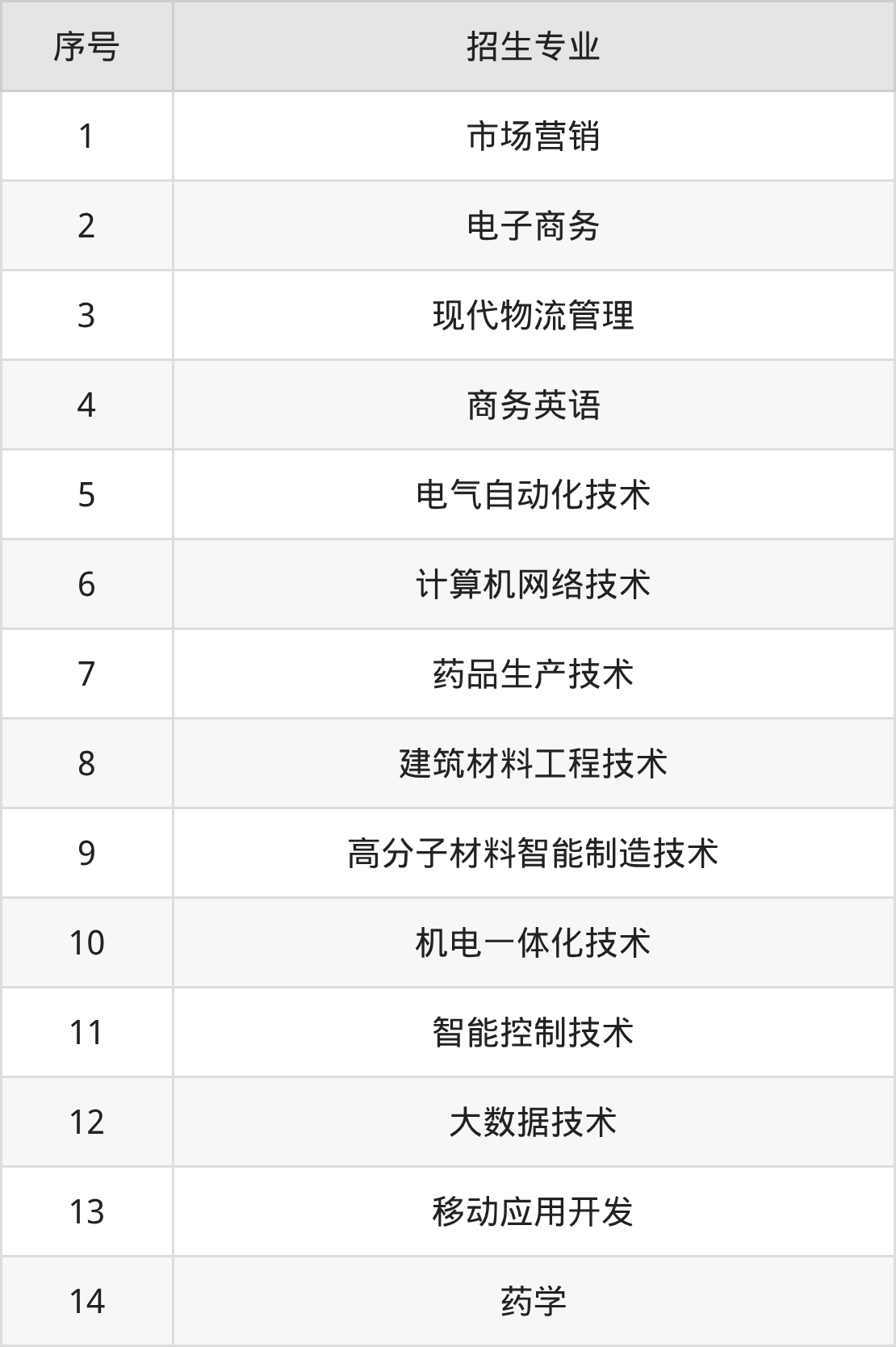 2、招生专业