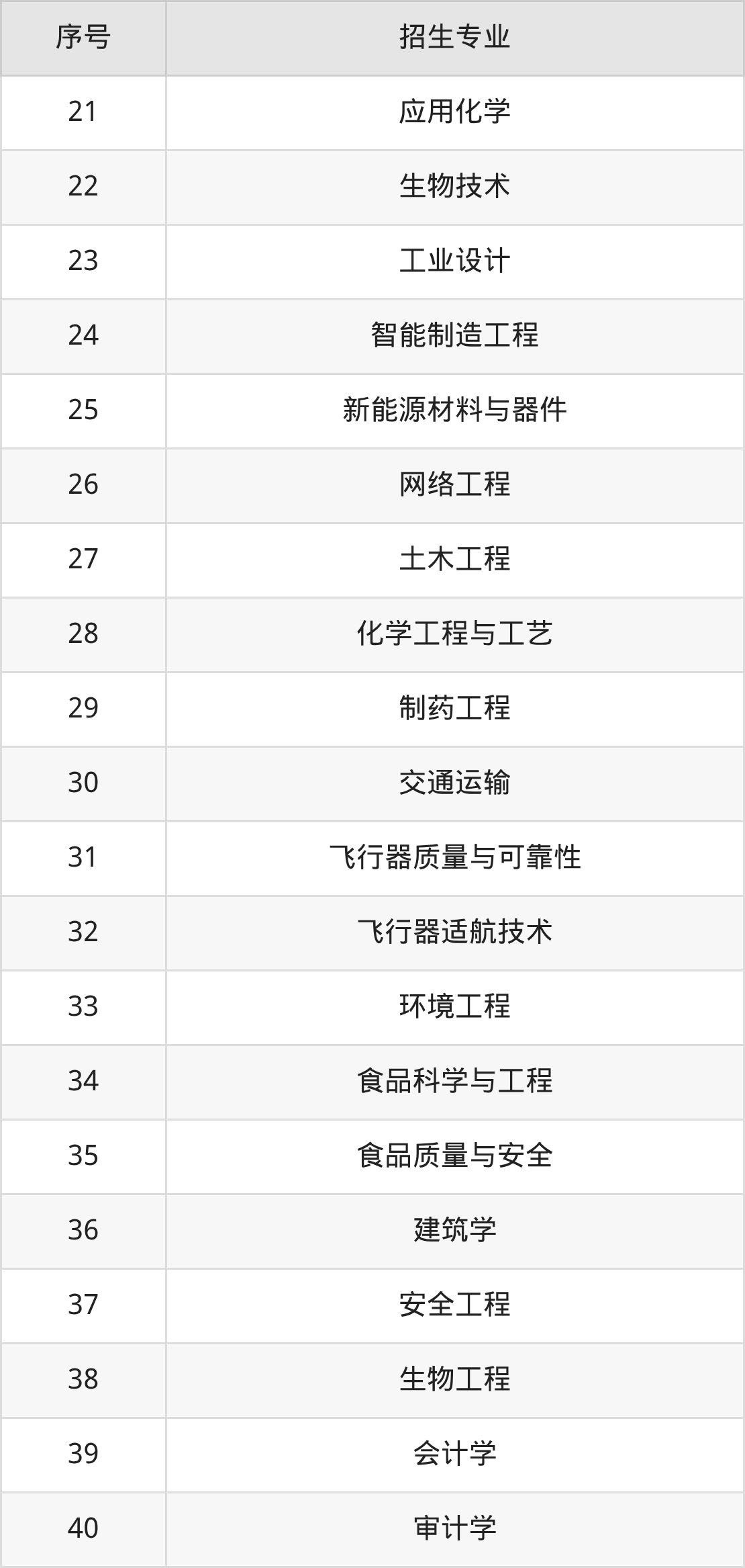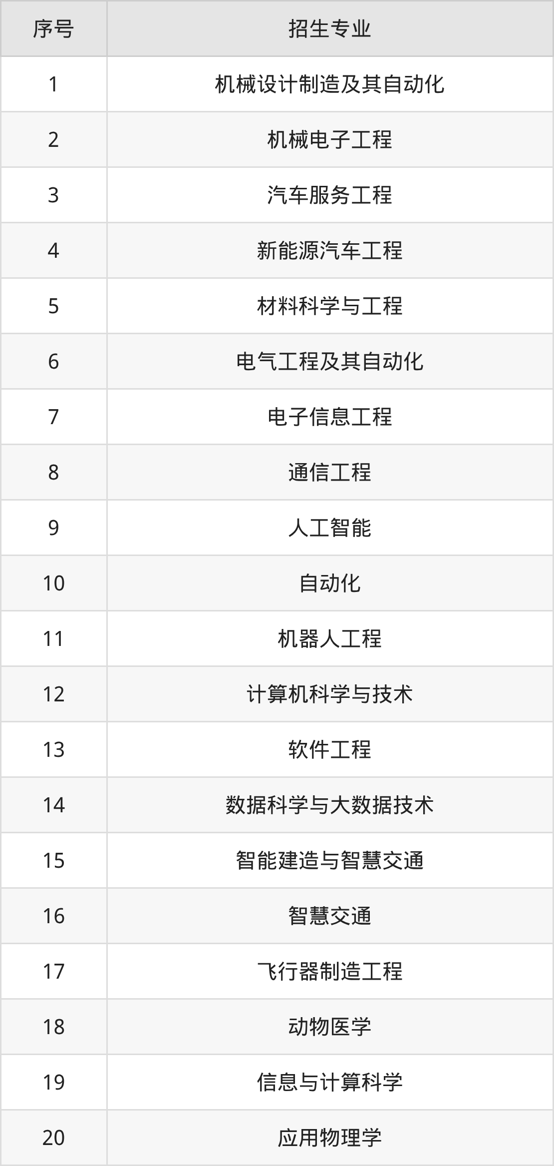 国际经济与贸易、知识产权、汉语国际教育、英语、工商管理、市场营销、财务管理、电子商务、广播电视编导、飞行技术