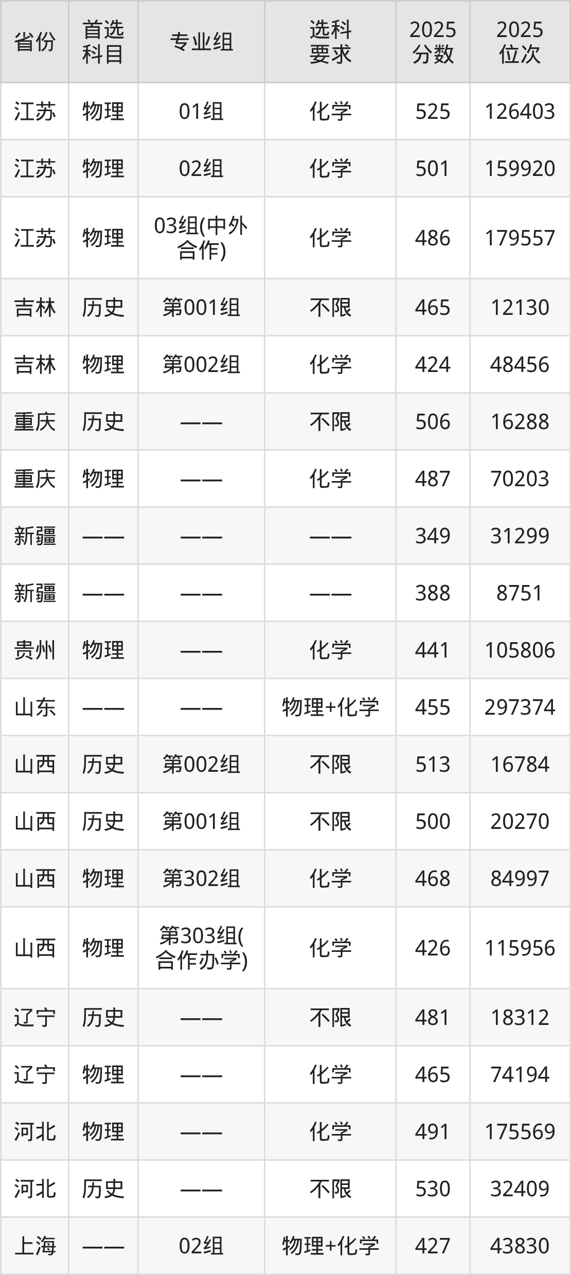 物理类各专业组分数线:01组525分、02组501分、03组(中外合作)486分。