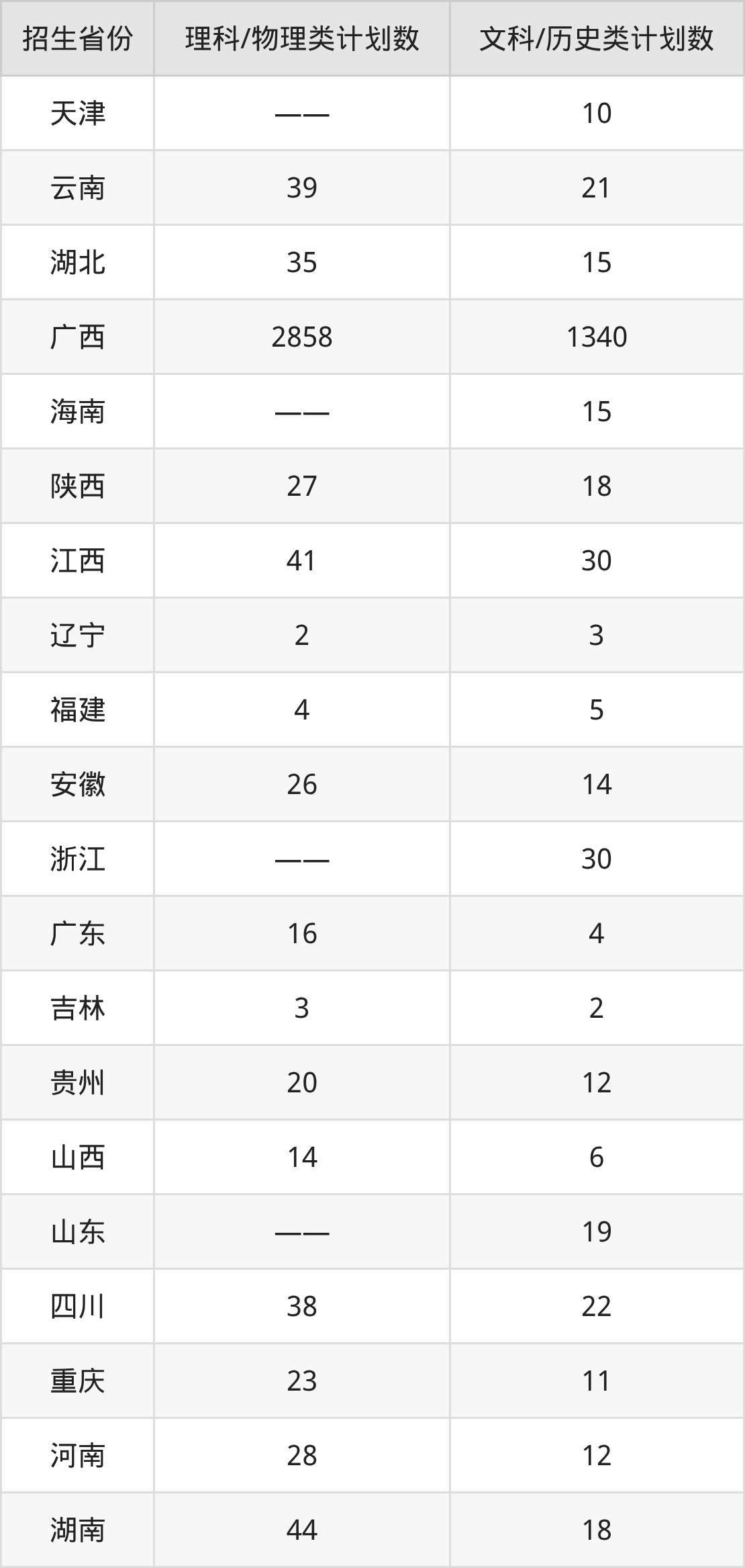广西财经学院招生简章显示:学校在全国22个省(市、自治区)招收4875人,包括历史类1550人、物理类3251人、3+3省份74人,招生专业有经济学、财政学、税收学等。
