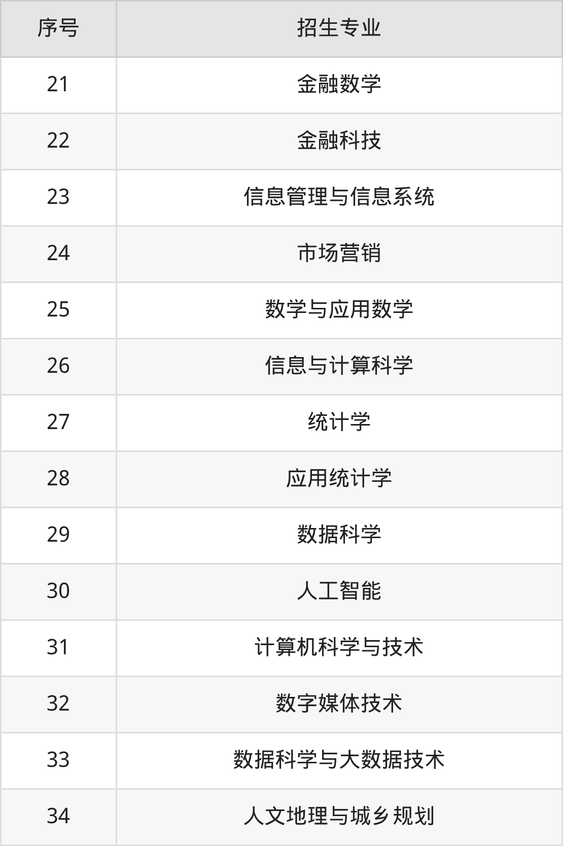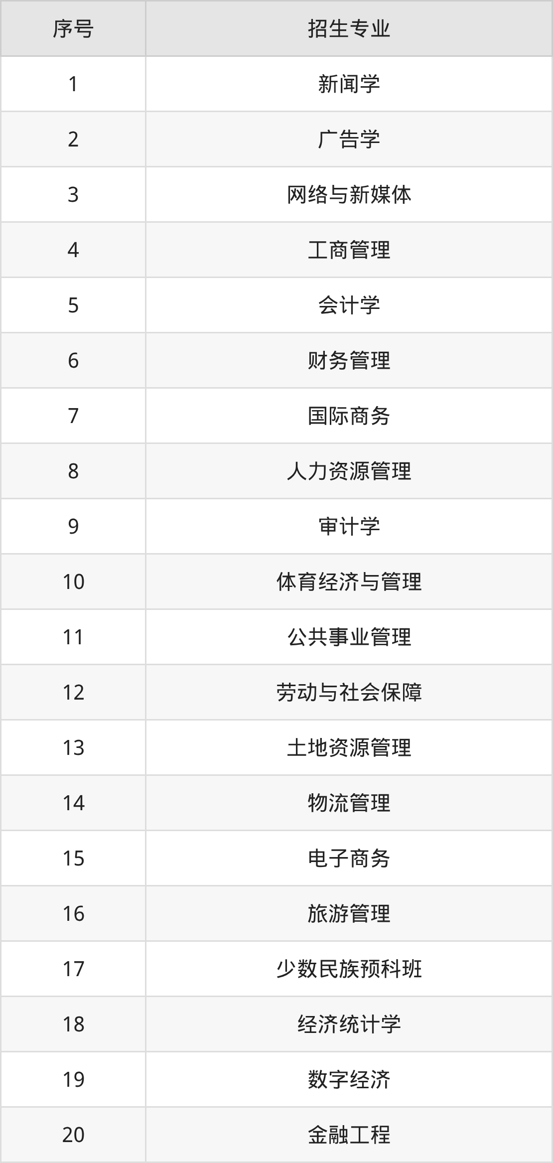 经济学、财政学、税收学、金融学、保险学、投资学、国际经济与贸易、法学、法语、商务英语