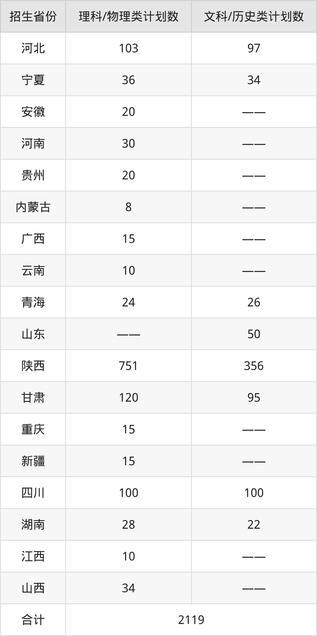 汉中职业技术学院招生简章显示:学校在全国18个省(市、自治区)招收2119人,包括3+3省份50人、历史类730人、物理类1324人、理科15人,招生专业有中草药栽培与加工技术、园林技术、动物医学等。
