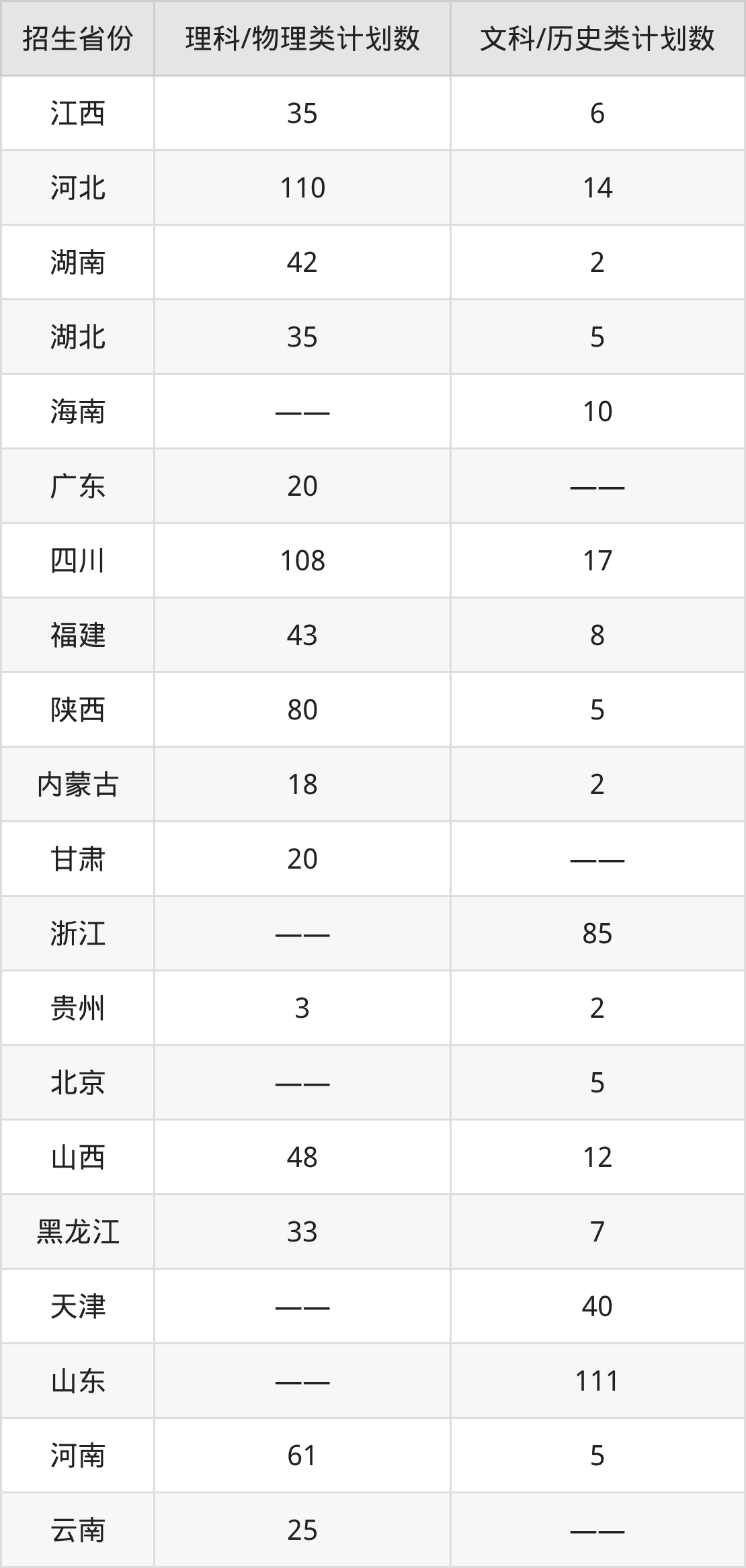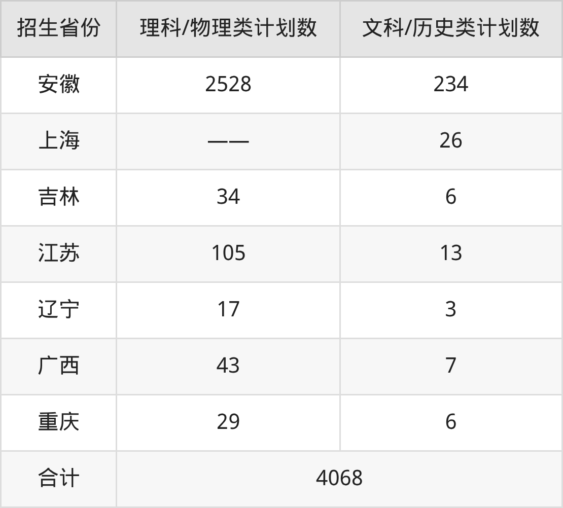分省招生计划: