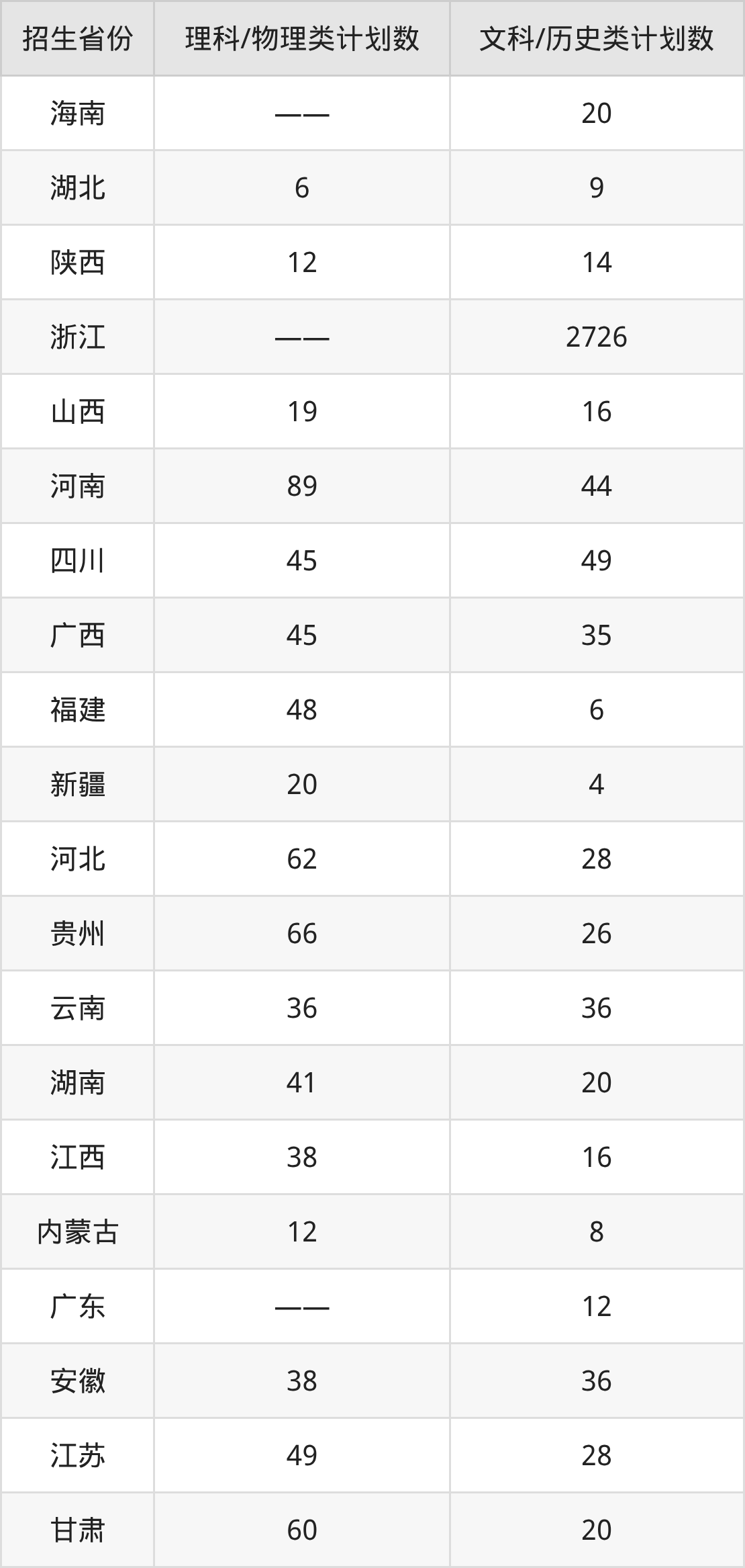 分省招生计划: