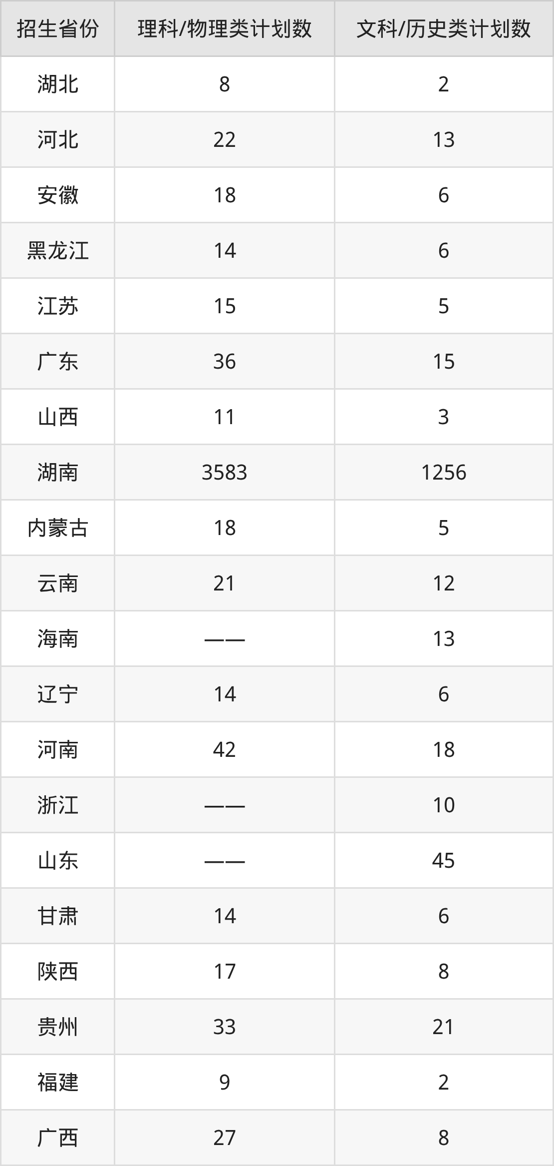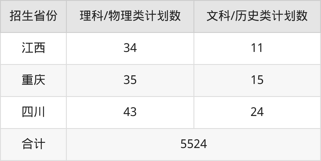 分省招生计划: