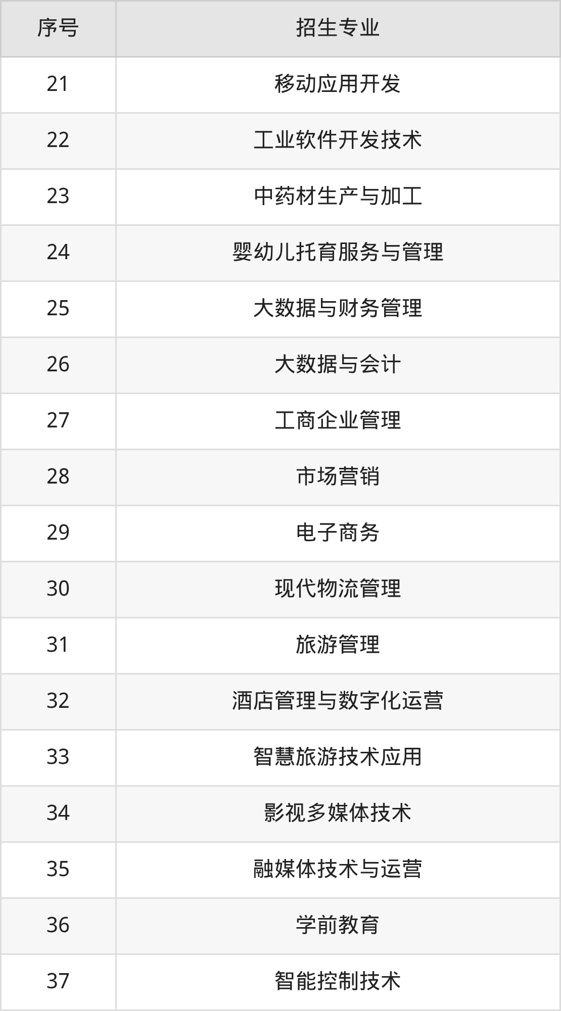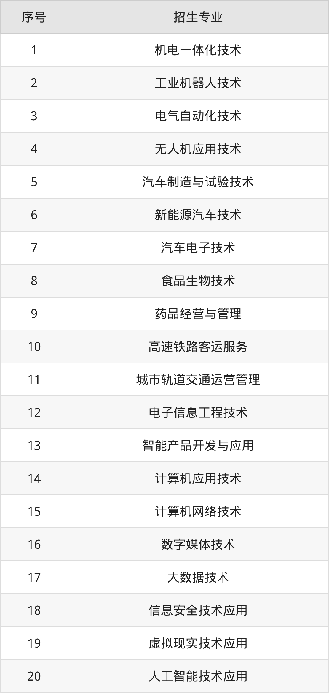绿色食品生产技术、工程测量技术、无人机测绘技术、建筑装饰工程技术、风景园林设计、智能建造技术、建设工程管理、数控技术、机械制造及自动化、智能制造装备技术