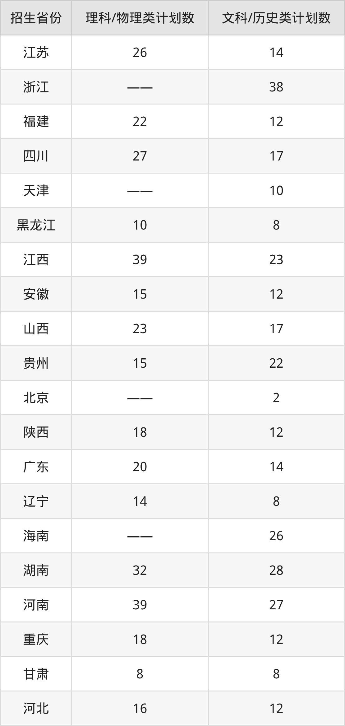 分省招生计划: