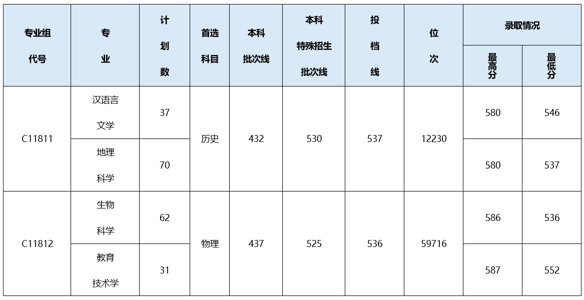 | 汉江师范学院 | 物理 | 汉语言文学 | 539 |