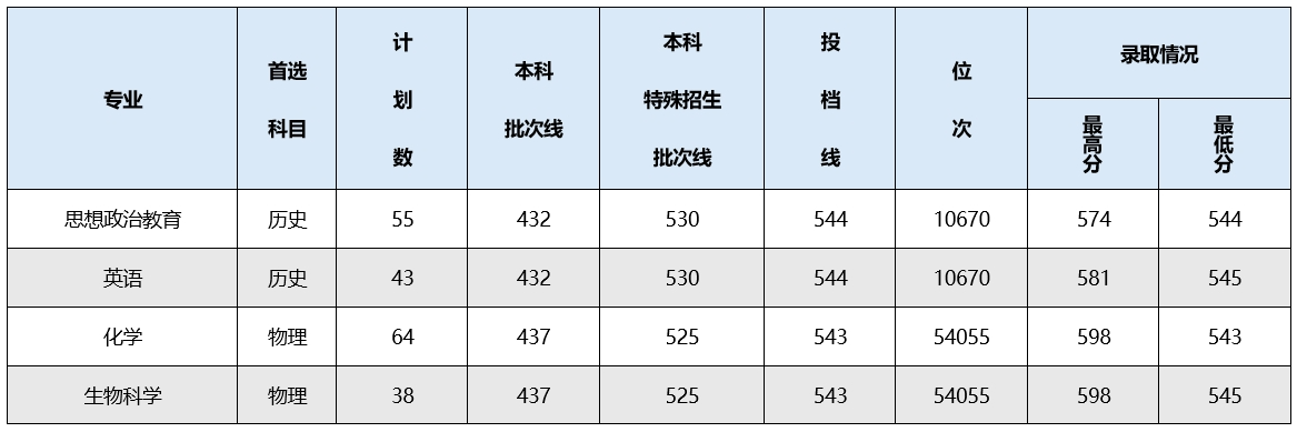 | 湖北第二师范学院 | 历史 | 英语 | 542 |