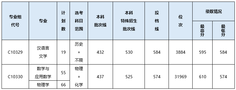 | 汉江师范学院 | 历史 | 汉语言文学 | 528 |