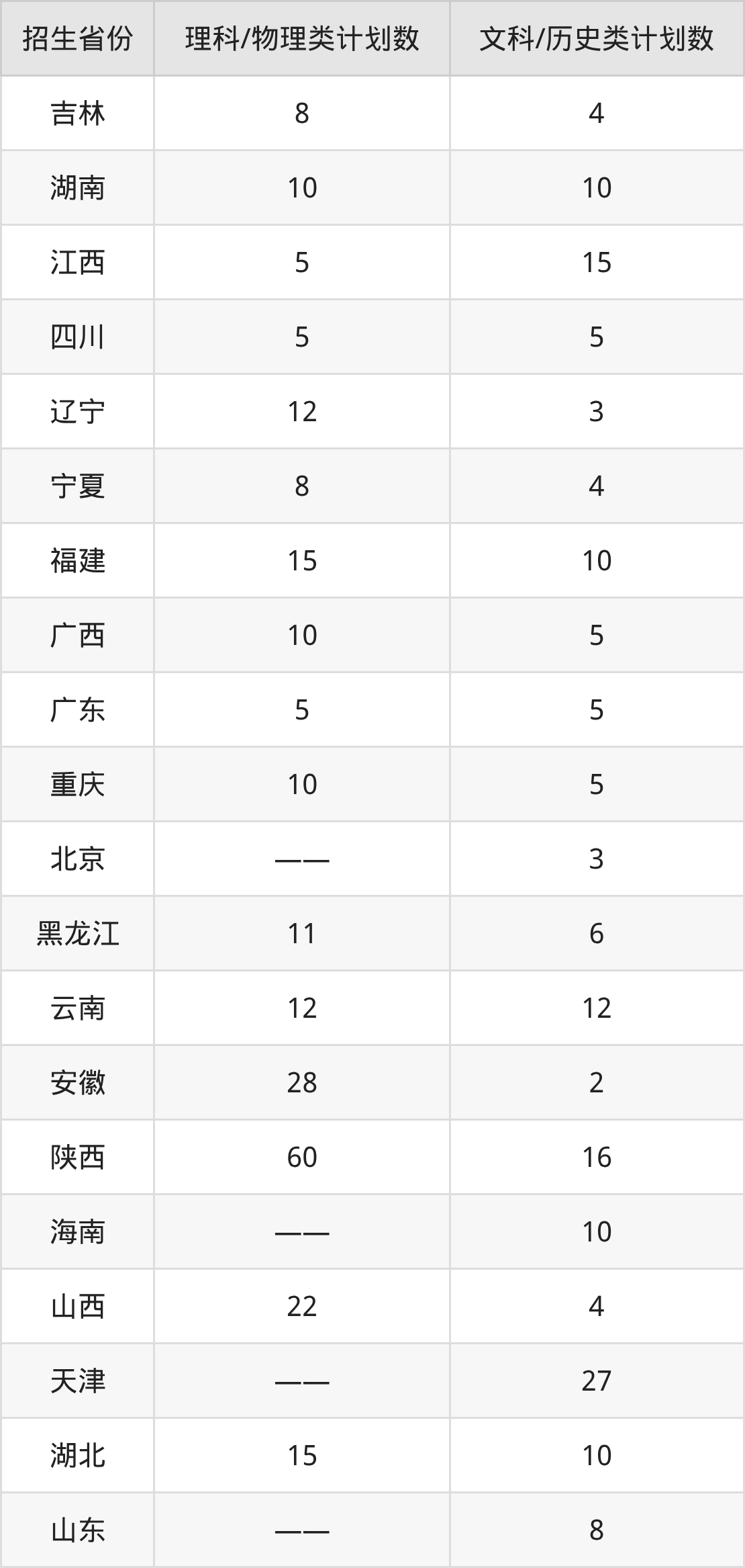 分省招生计划: