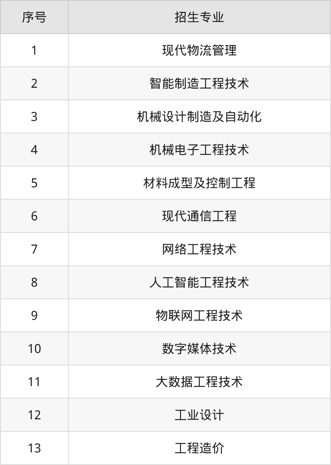 机电一体化技术、汽车制造与试验技术、社区康复、无人机应用技术、新能源汽车技术、电气工程及自动化、汽车服务工程技术、汽车工程技术、学前教育、大数据与财务管理
