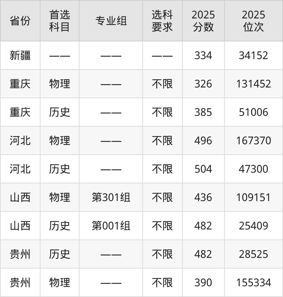 1、新疆2025年重庆机电职业技术大学在新疆最低录取分数线:理科334分。