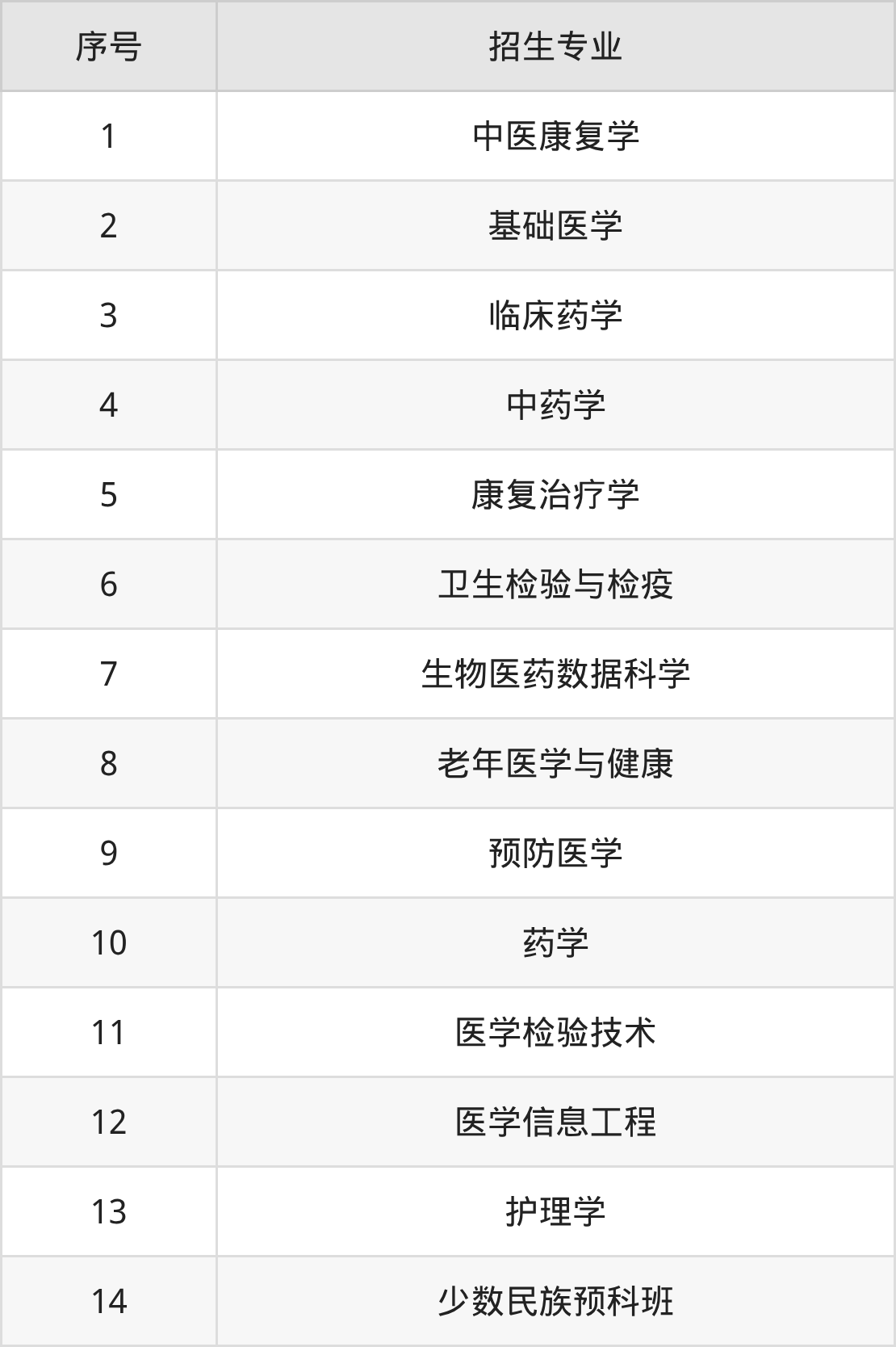 公共事业管理、临床医学、中医学、医学影像学、口腔医学、眼视光医学、儿科学、麻醉学、中西医临床医学、针灸推拿学