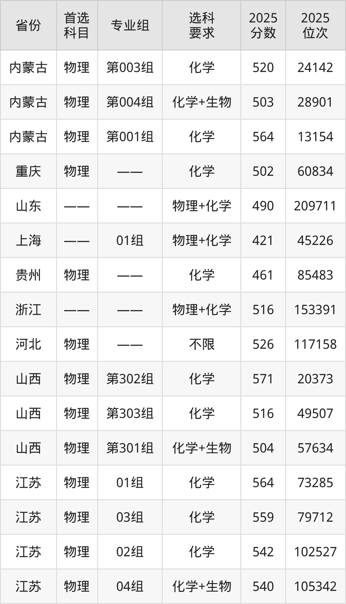 8、山西2025年宁夏医科大学在山西最低录取分数线:物理类504分。