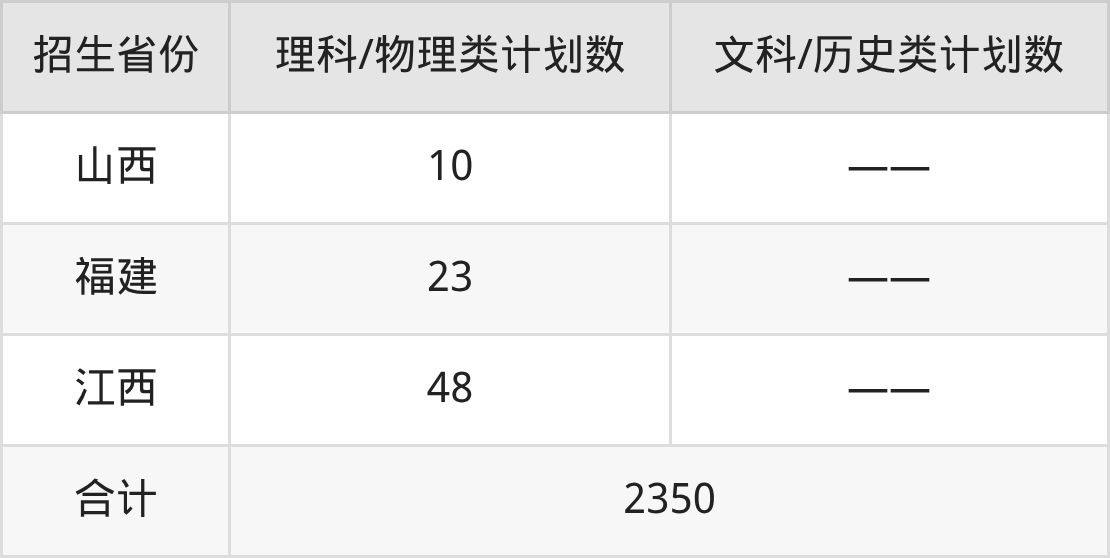 分科类招生计划:历史类10人、物理类2202人、3+3省份138人