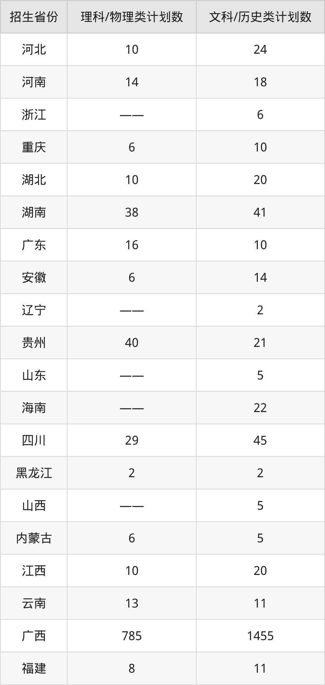 广西幼儿师范高等专科学校招生简章显示:学校在全国20个省(市、自治区)招收2740人,包括历史类1714人、物理类993人、3+3省份33人,招生专业有健康大数据管理与服务、婴幼儿托育服务与管理、心理咨询等。