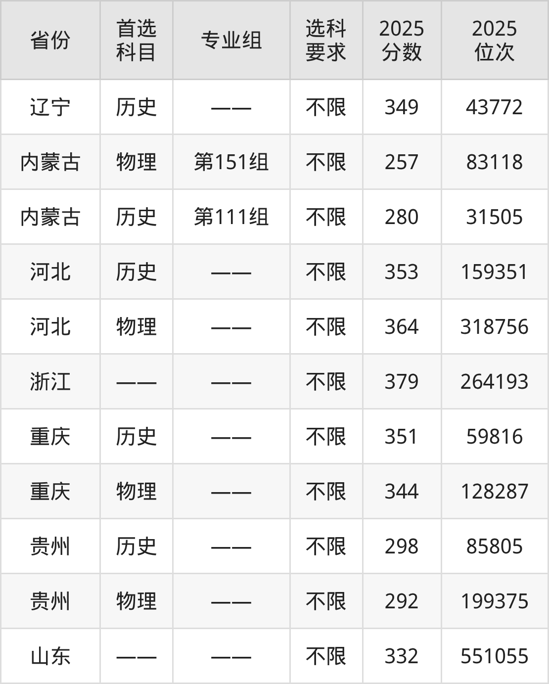 5、重庆2025年广西幼儿师范高等专科学校在重庆最低录取分数线:历史类351分、物理类344分。