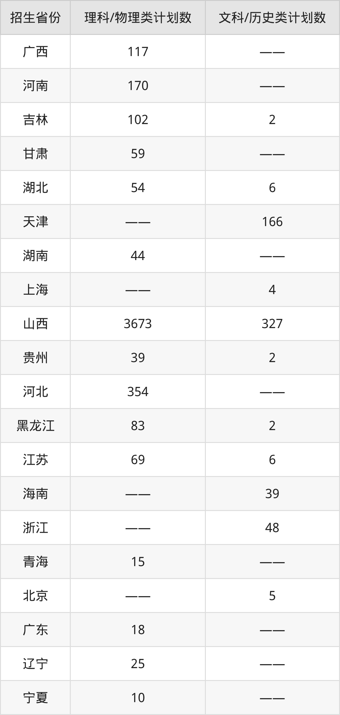 分省招生计划: