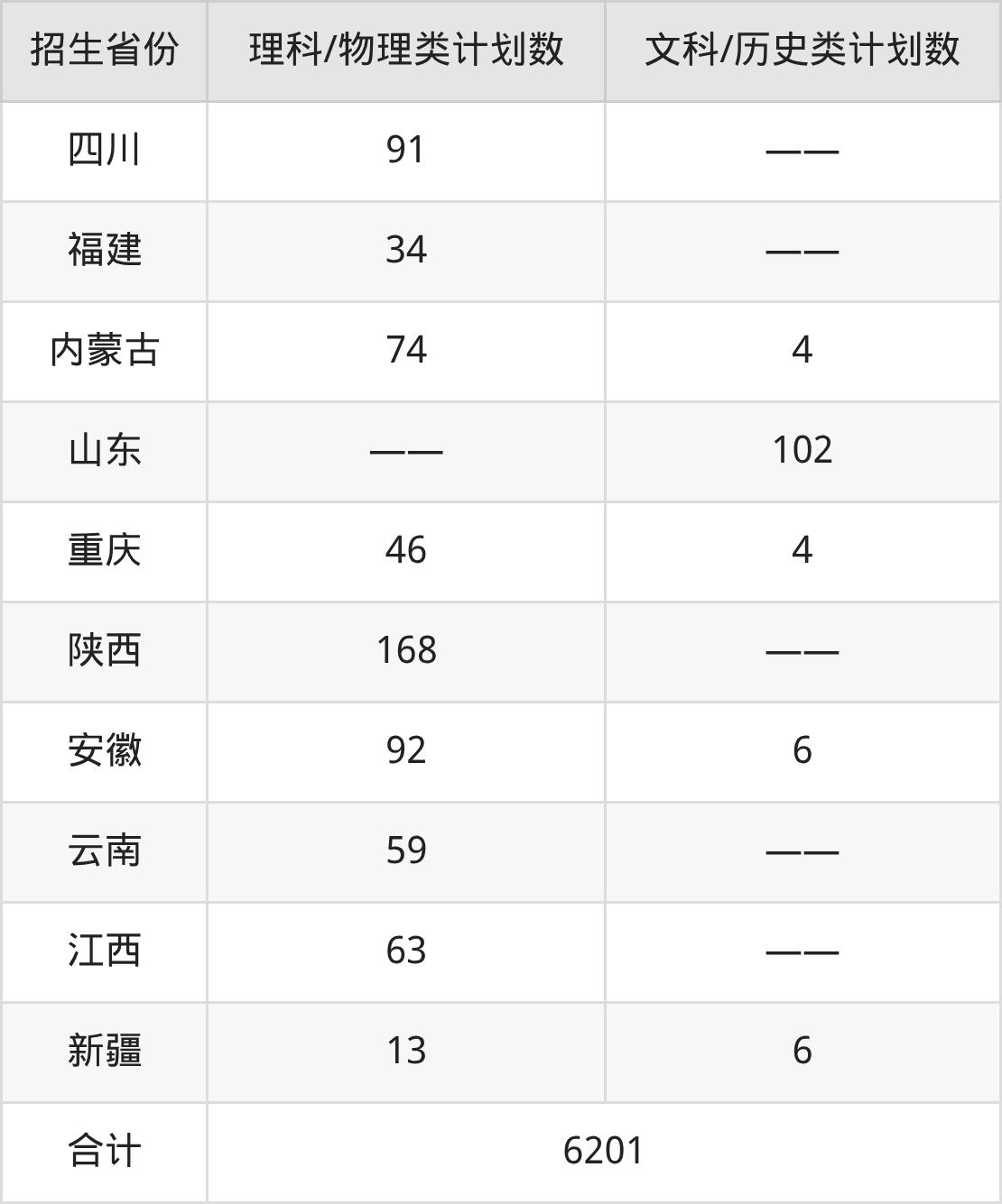 总招生计划:6201人