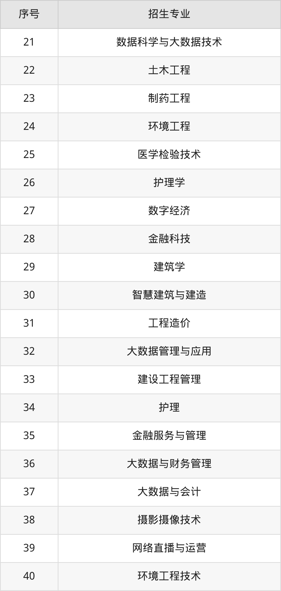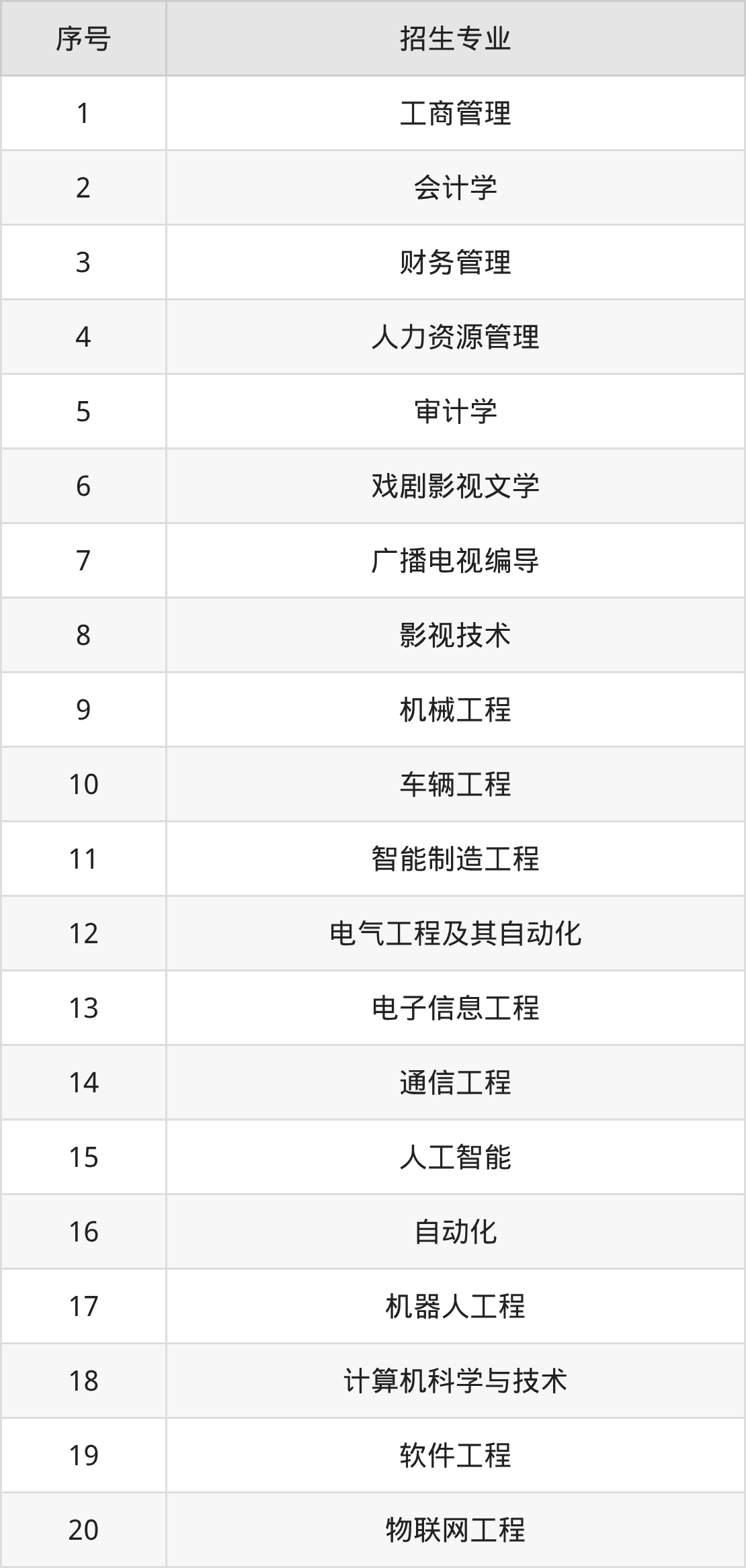税收学、金融学、法学、学前教育、小学教育、汉语言文学、英语、商务英语、网络与新媒体、应用心理学