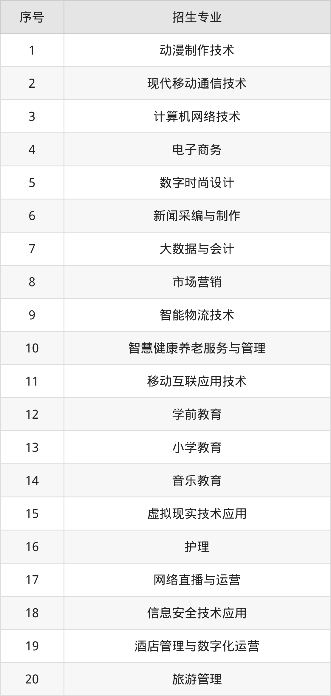 环境工程技术、机械制造及自动化、精细化工技术、服装设计与工艺、食品检验检测技术、药品生产技术、应用电子技术、新能源汽车技术、汽车制造与试验技术、工业机器人技术