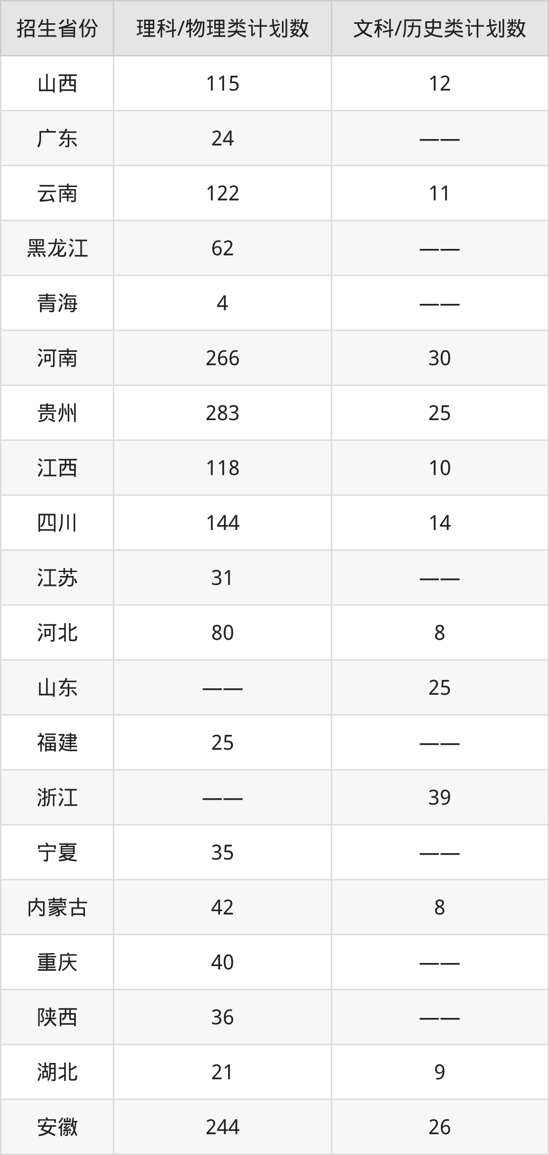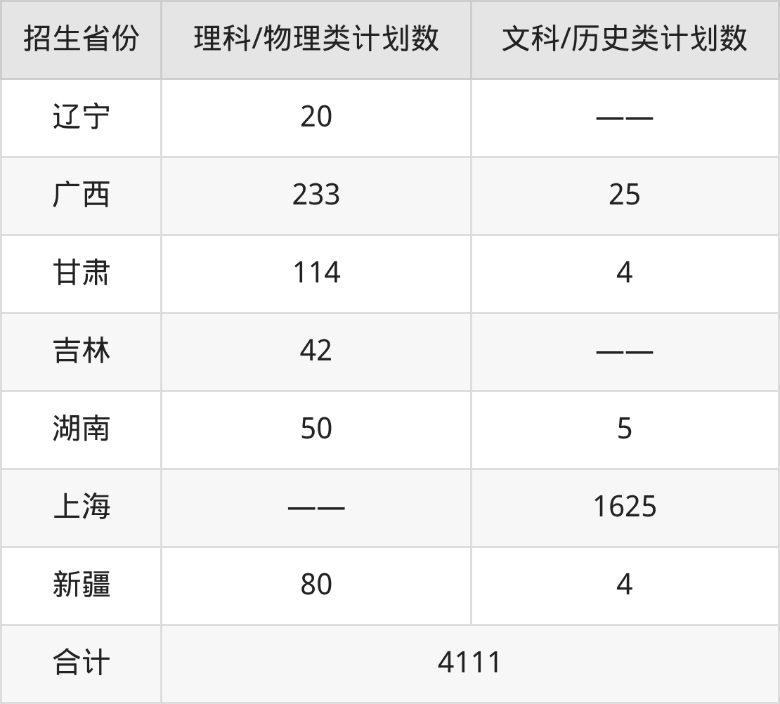 分科类招生计划:文科4人、理科80人、3+3省份1689人、物理类2151人、历史类187人