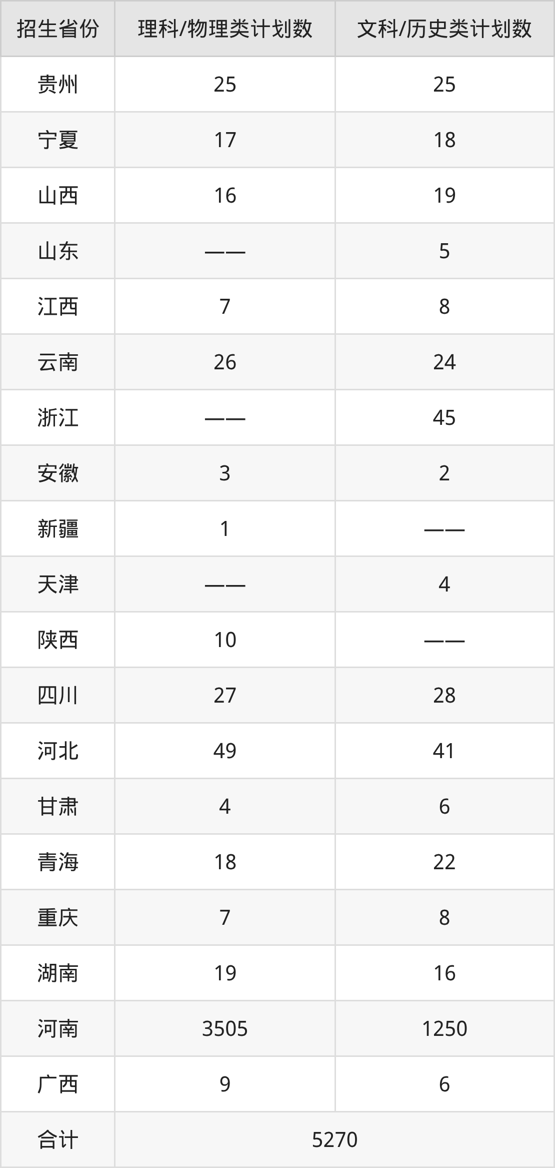 洛阳职业技术学院招生简章显示:学校在全国19个省(市、自治区)招收5270人,包括3+3省份54人、理科1人、历史类1473人、物理类3742人,招生专业有中医学、园林工程技术、建筑室内设计等。