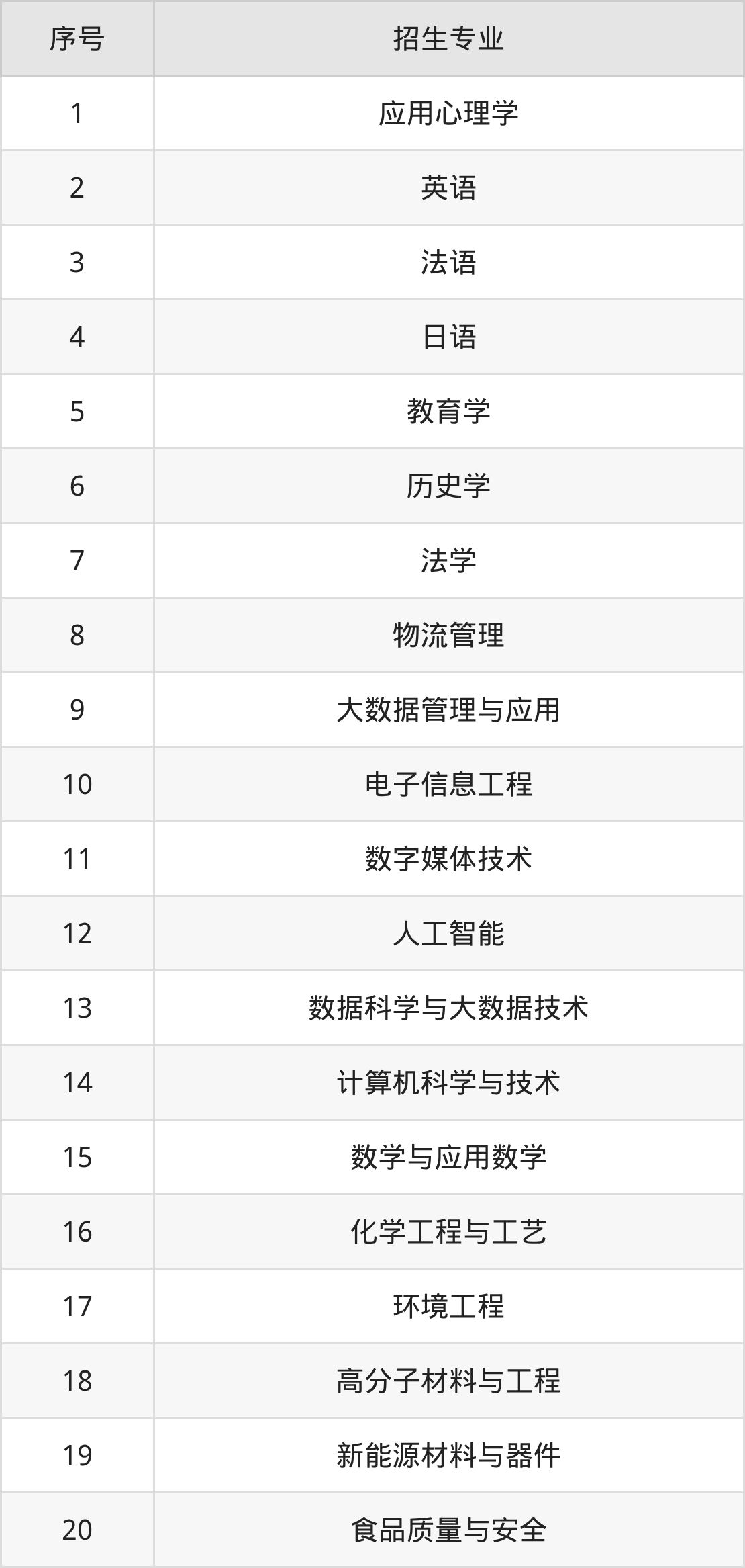 金融学、国际经济与贸易、工商管理、会计学、社会工作、城乡规划、针灸推拿学、行政管理、汉语言文学、广告学