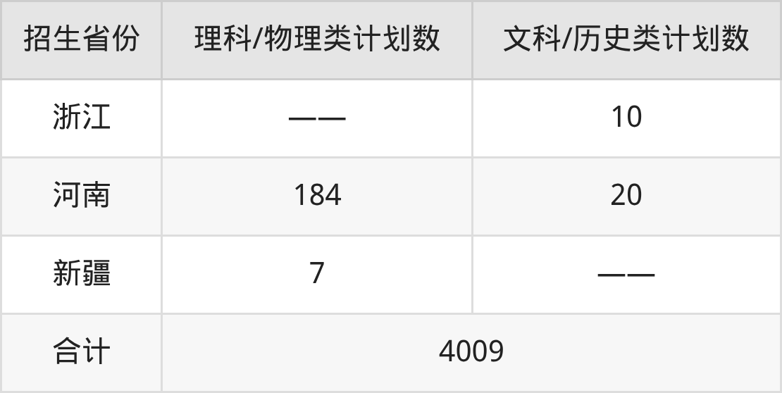 分科类招生计划:历史类861人、物理类3089人、3+3省份52人、理科7人