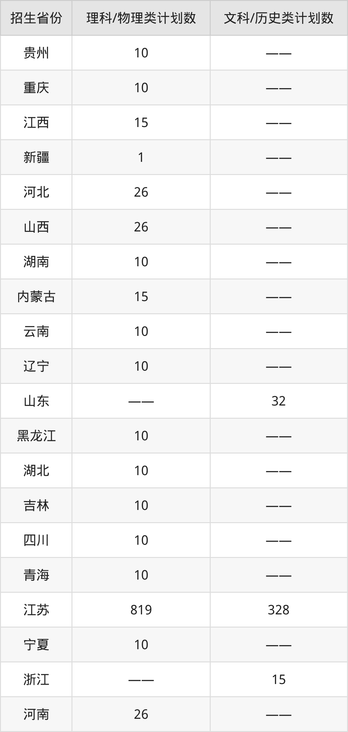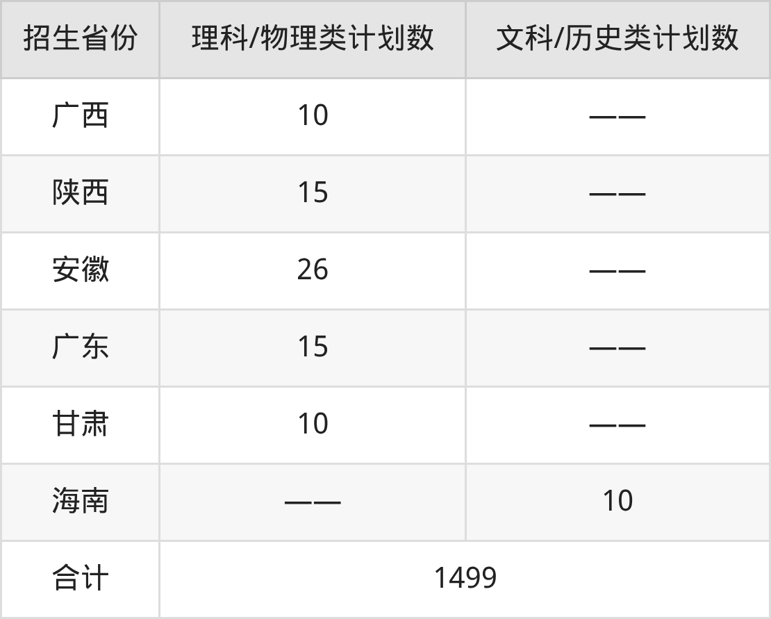 分省招生计划: